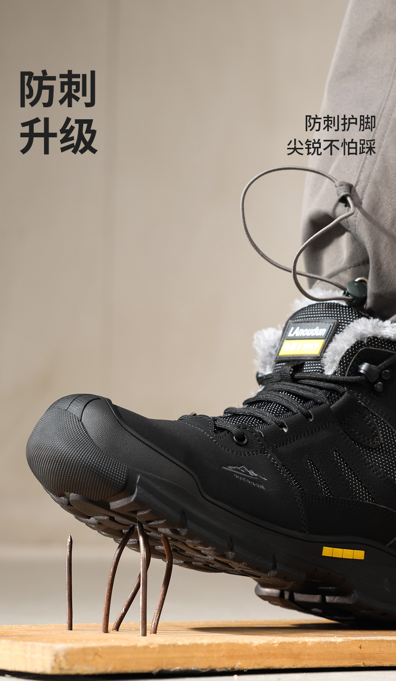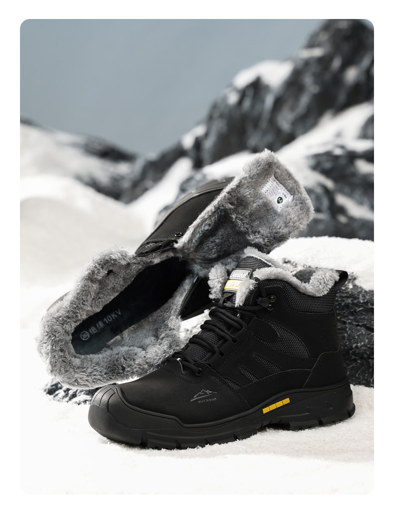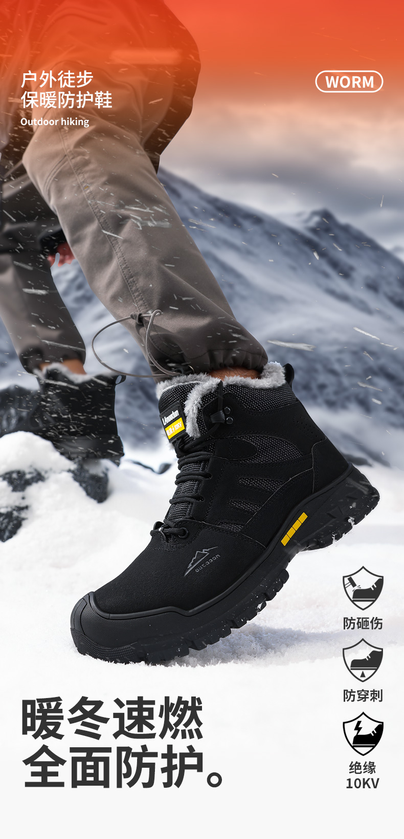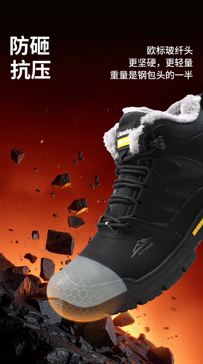 冬季新款高帮劳保鞋防砸防刺穿绝缘玻纤头橡胶底保暖棉毛