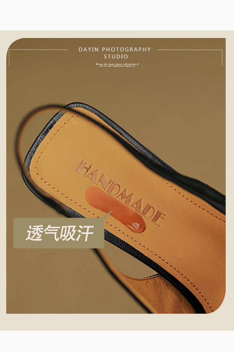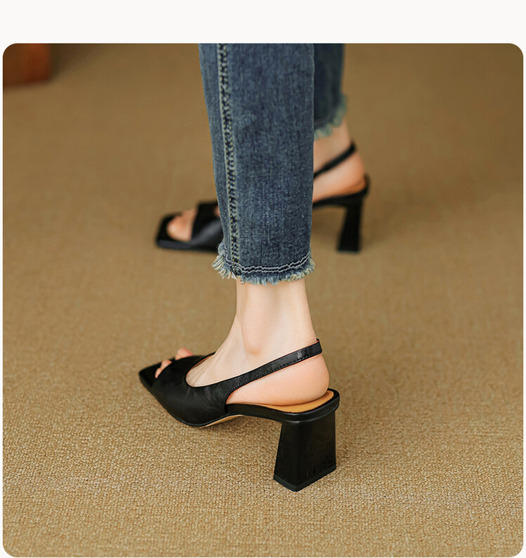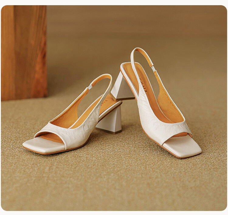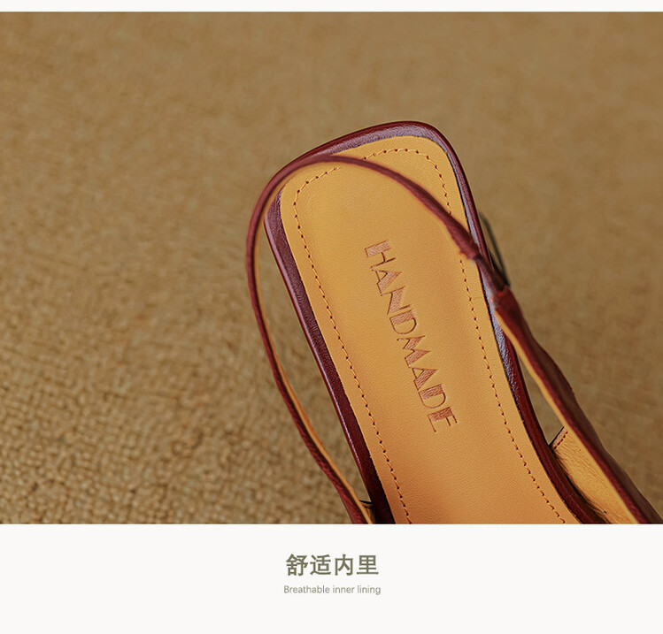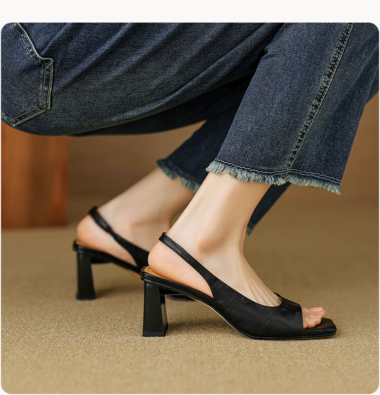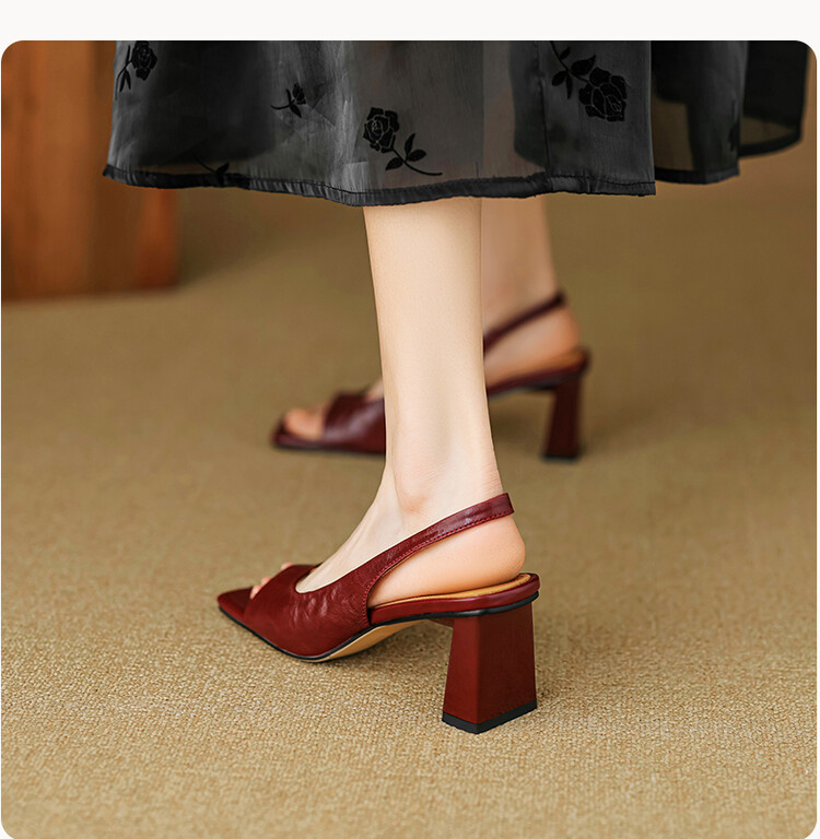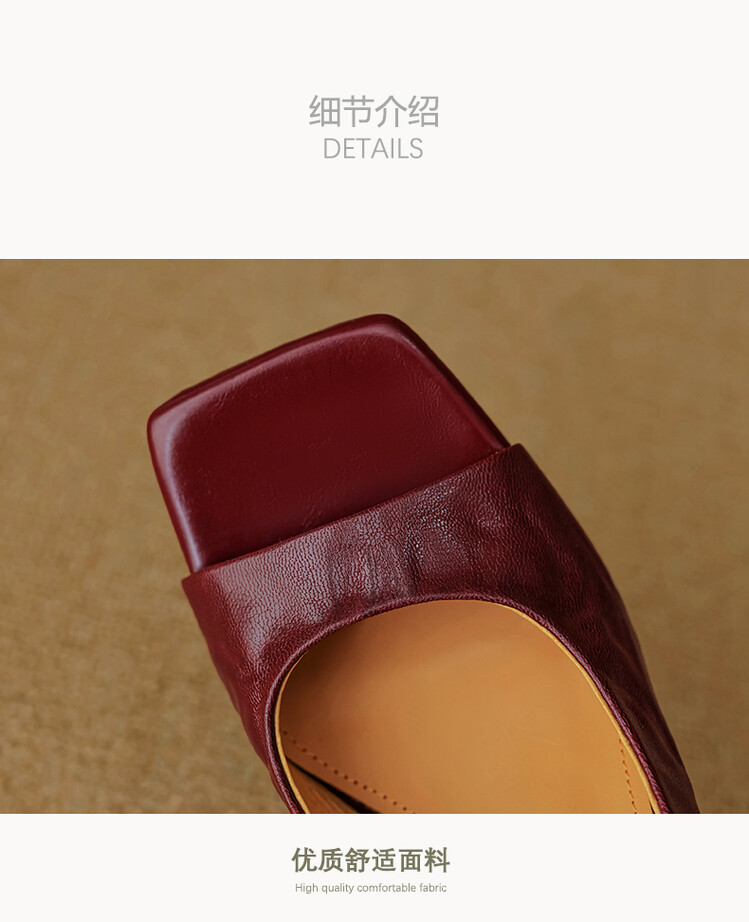 【预售5天】简约法式鱼嘴凉鞋女新款方头露趾一字式粗跟手抓纹羊皮高跟鞋HB&5012