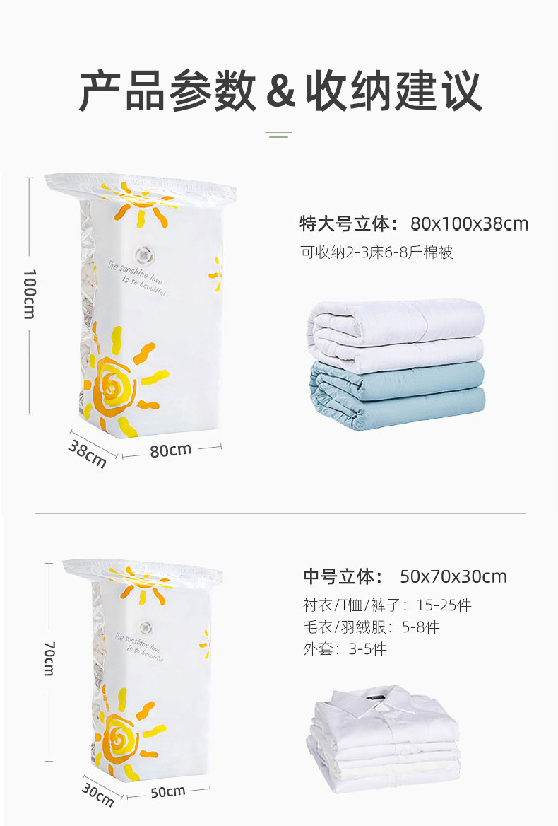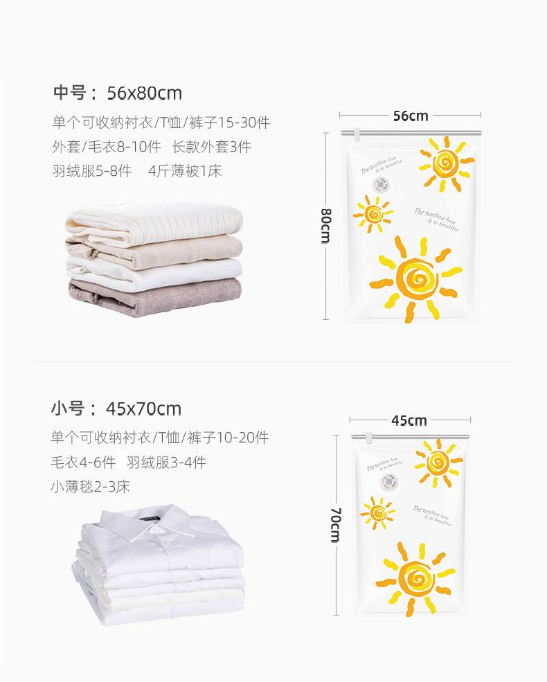 【太阳花阳光款】太力真空压缩袋 迷你气阀秒速排气 升级加厚呵护衣被收纳袋
