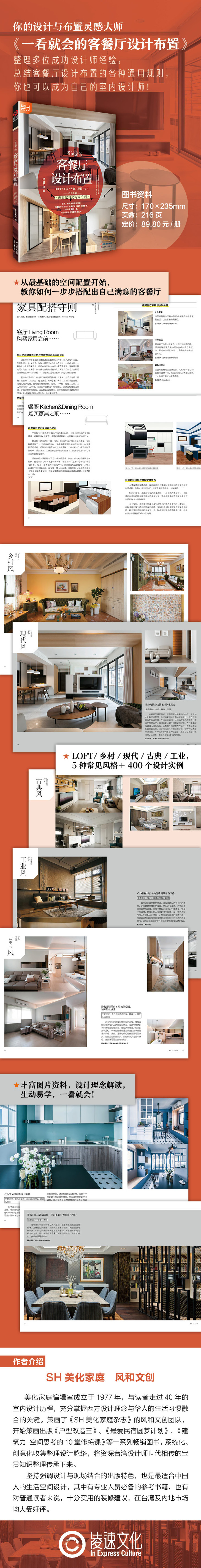 凌速文化美化家庭编辑室:在台湾创刊42年之久《SH美化家庭》杂志,是设计师、创业成功者与大众的桥梁,充分掌握西方设计理念与华人生活习惯融合的关键,策划出版《户型改造王》《最爱民宿圆梦计划》《从设计到现场•一流施工工艺圣经》《建筑力•空间思考的10堂修练课》等一系列畅销图书,系统化、创意化收集整理设计脉络,坚持强调设计与现场结合的出版特色,将资深设计师的宝贵经验和知识整理传承下来