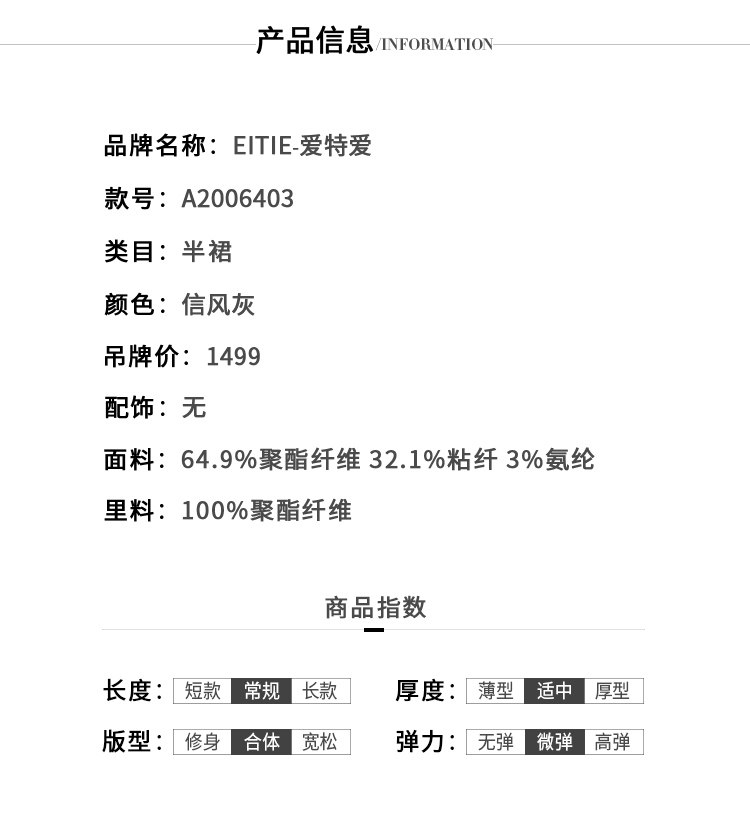 EITIE爱特爱春季新款时尚纽扣装饰A字裙格子半身裙短裙女A2006403