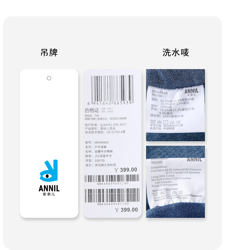 男童潮酷夹棉牛仔棉裤冬季新款安奈儿童装实体店同款XB446849