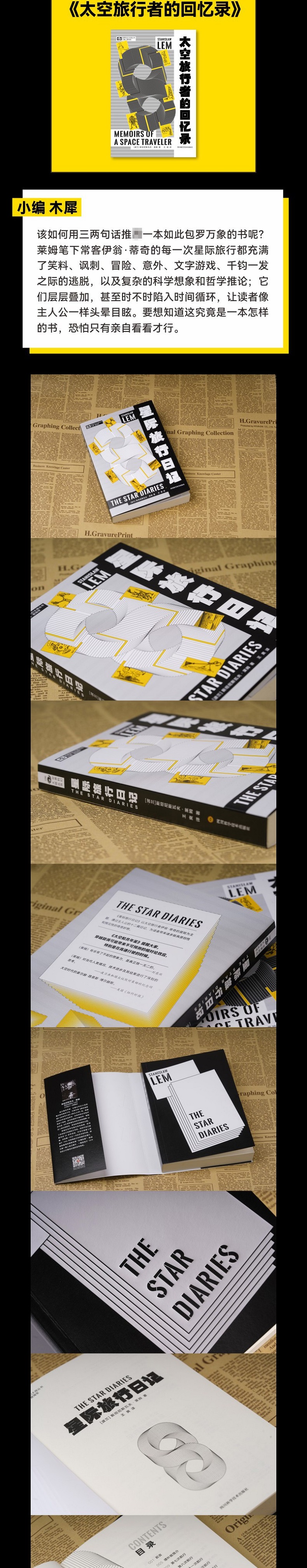《星际旅行日记》以莱姆笔下常客——太空旅行者伊翁·蒂奇的冒险为主题,通过主人公记录自己冒险经历的十二篇日记,为读者带来诸多原创性和预见性的奇思妙想。在这些篇目中,除了有着莱姆一贯的对人类文明与人工智能的反思(《第八次航行》《第十一次航行》),还不乏巧妙的历史戏仿(《第二十次航行》),尖刻的政治讽喻(《第十三次航行》),以及深沉的哲学思辨(《第二十一次航行》)。