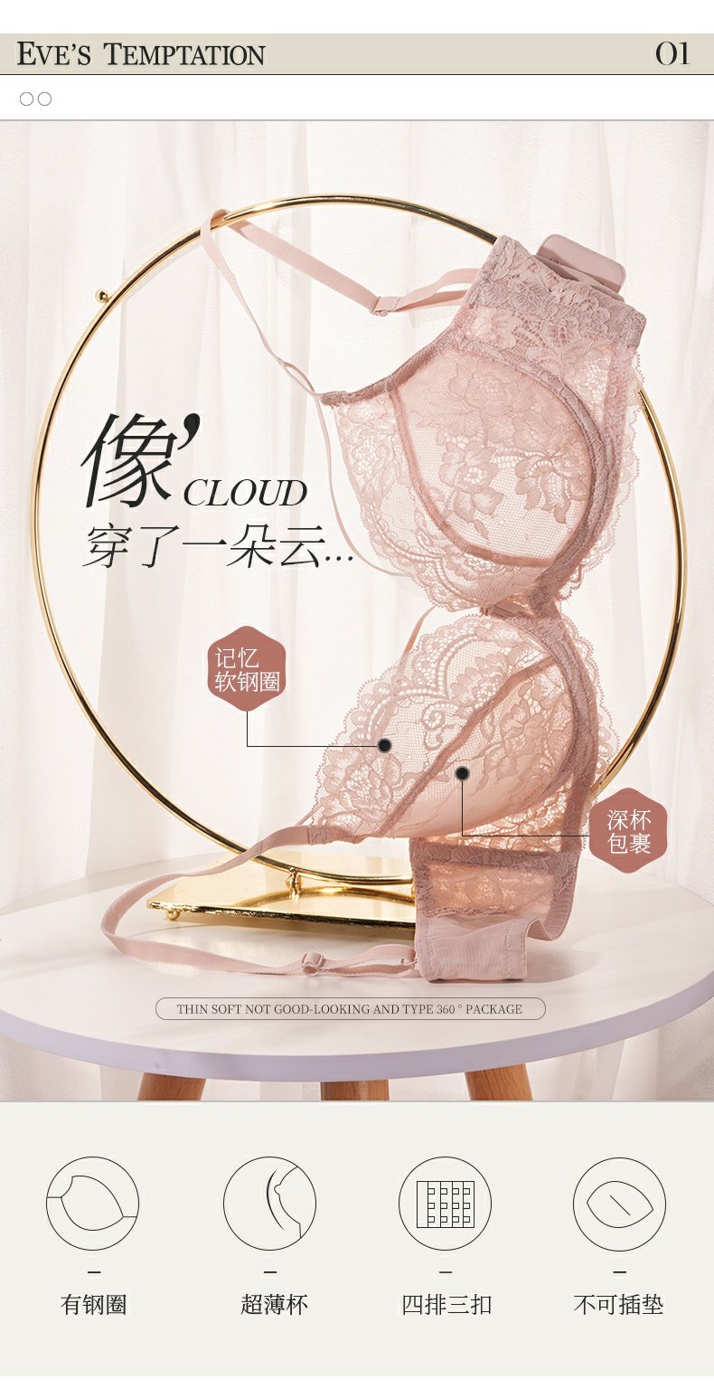 夏娃的诱惑极光组内衣女夏季薄款软钢圈超薄蕾丝文胸上托性感纯欲风bra