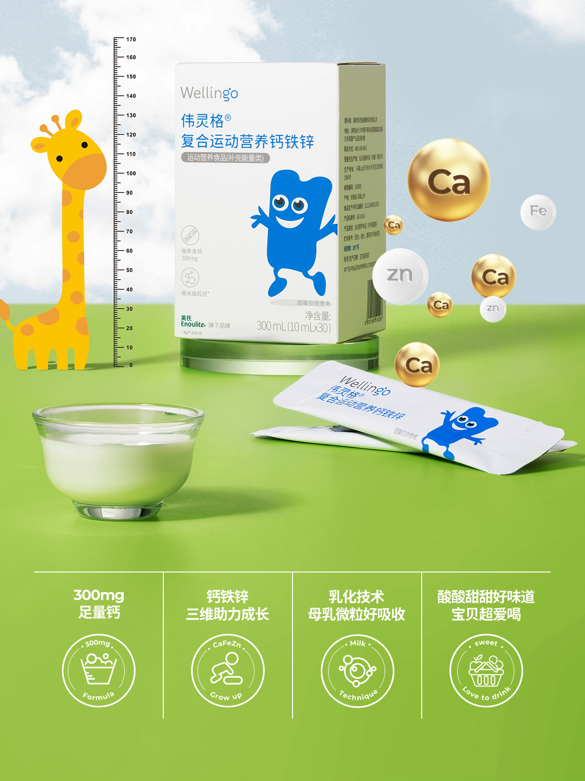 伟灵格复合运动营养钙铁锌(300ml)(30袋/盒)