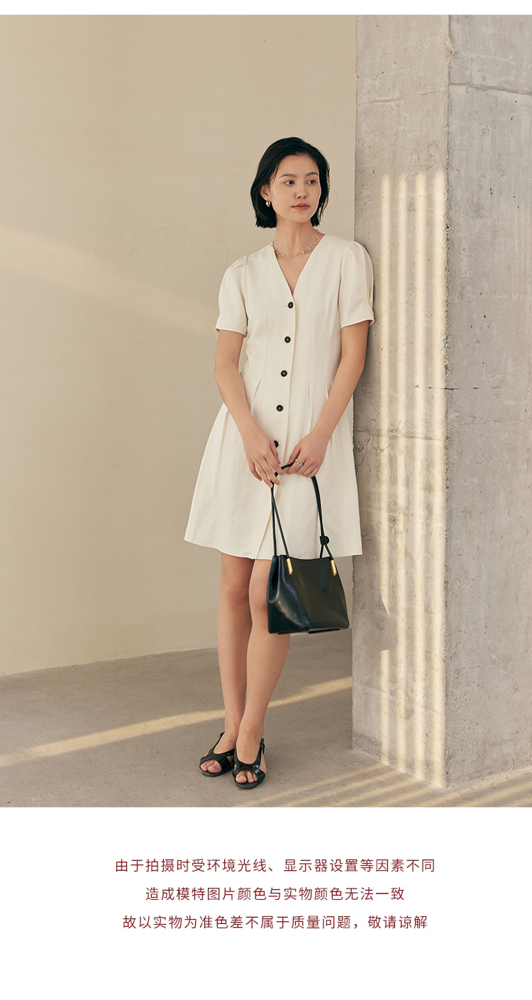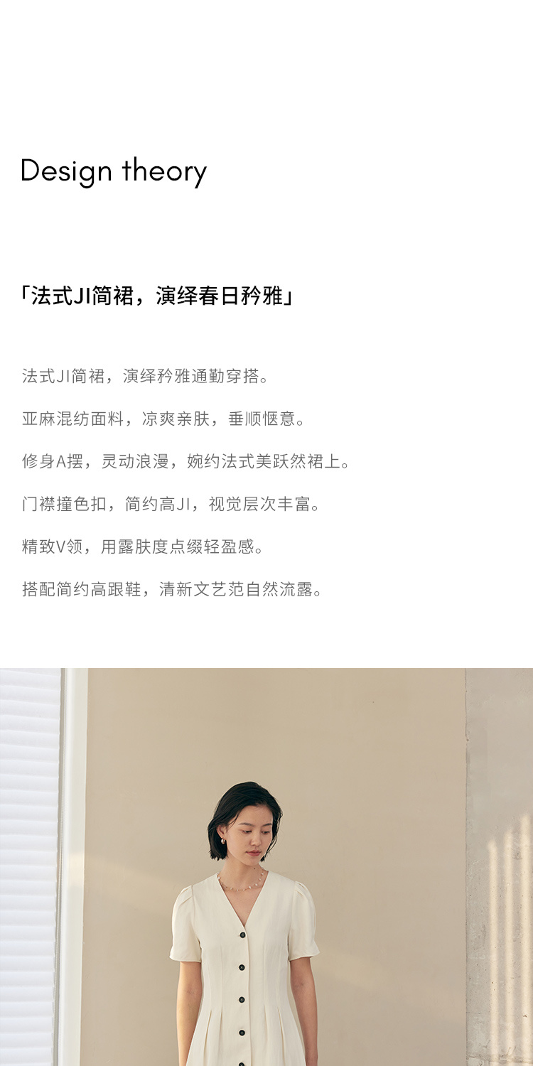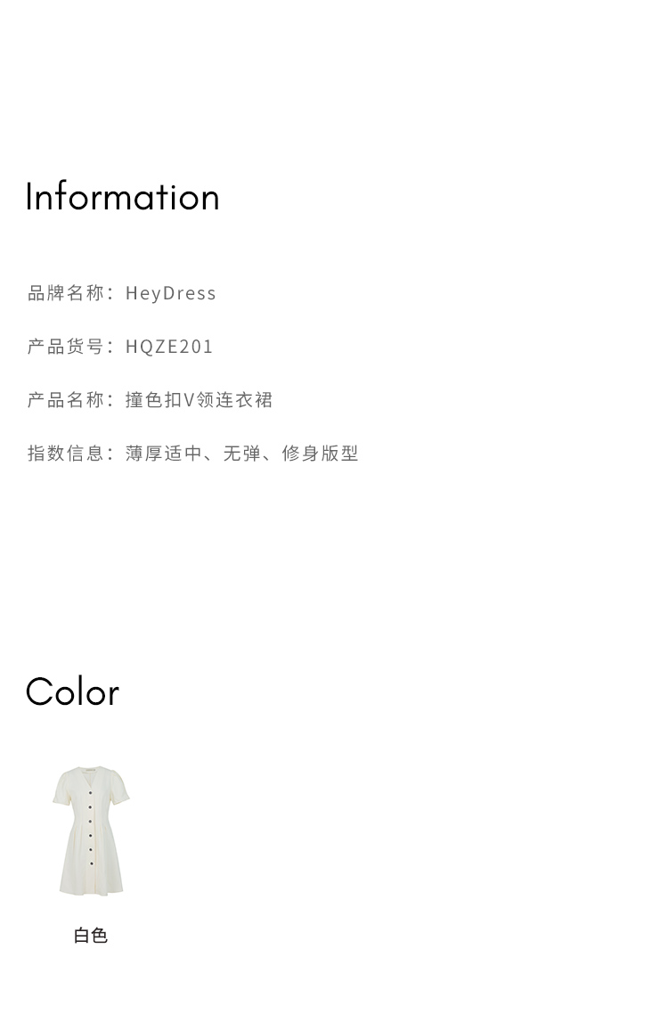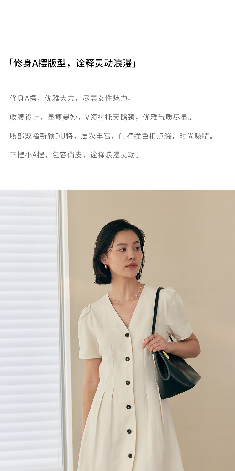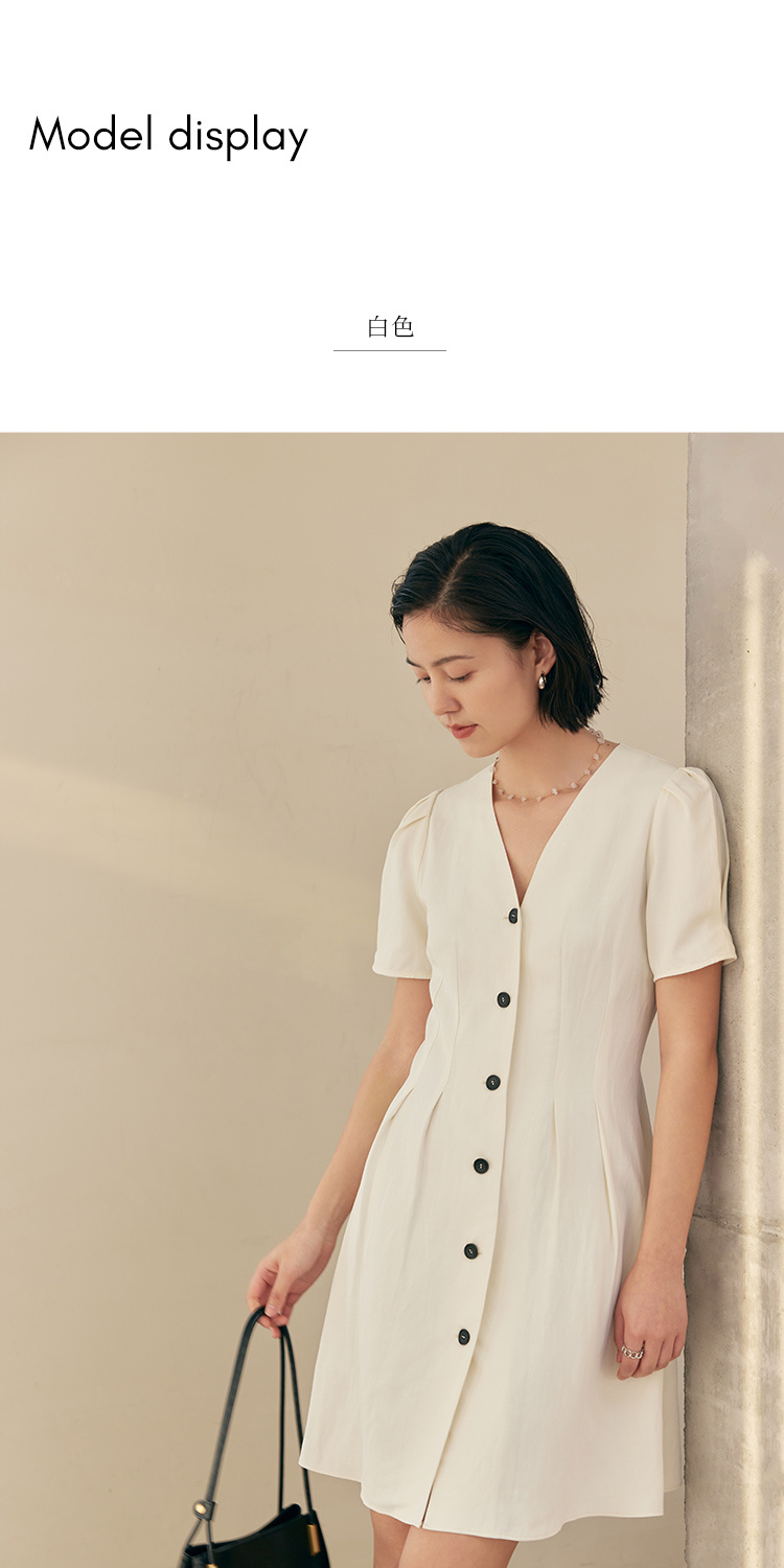 HeyDress白色连衣裙女夏季法式V领收腰设计感通勤气质短款A字裙子