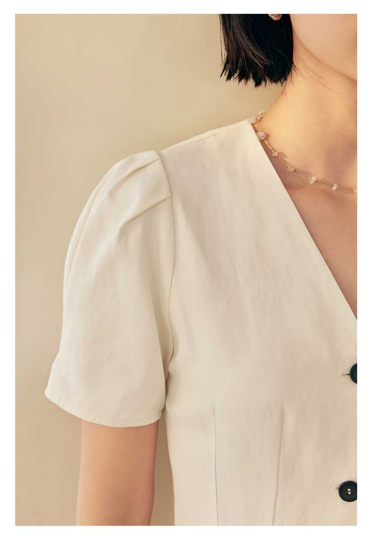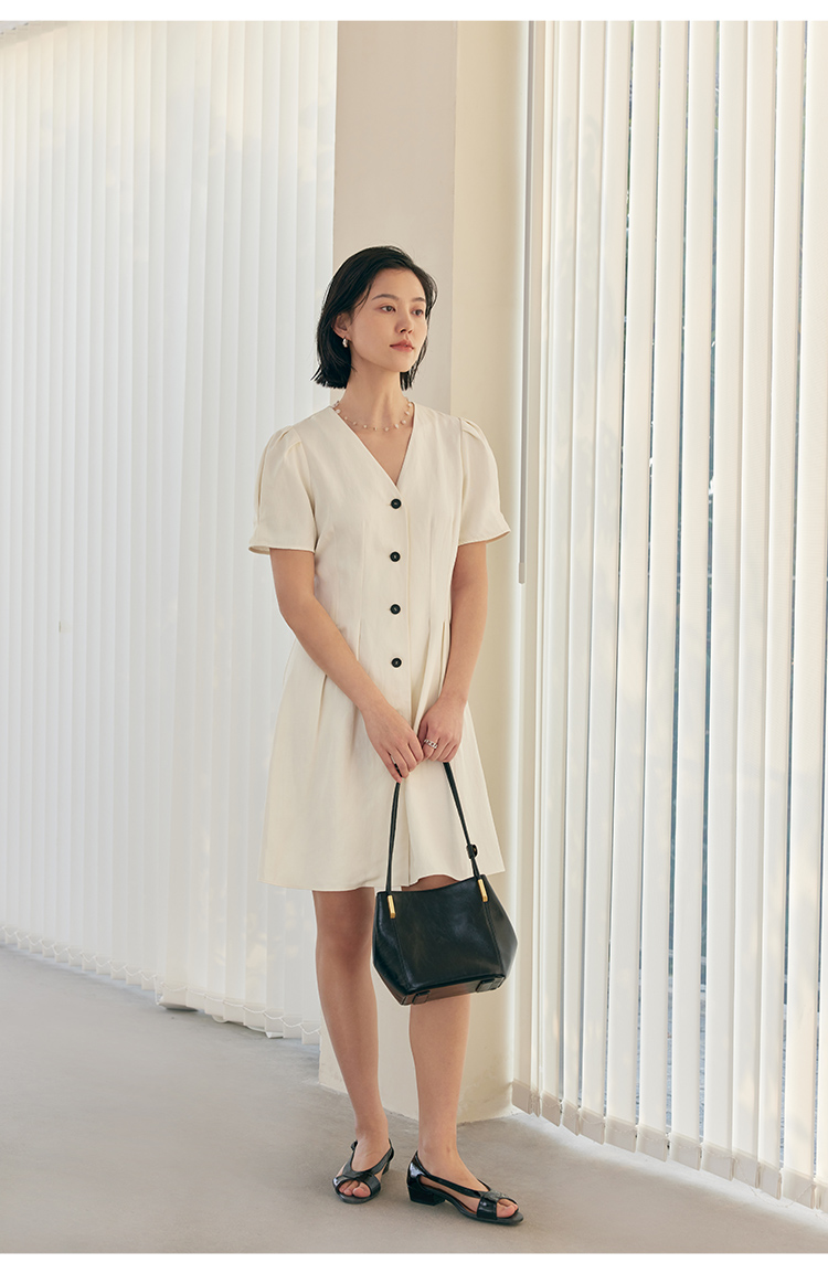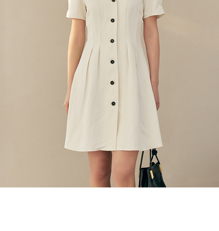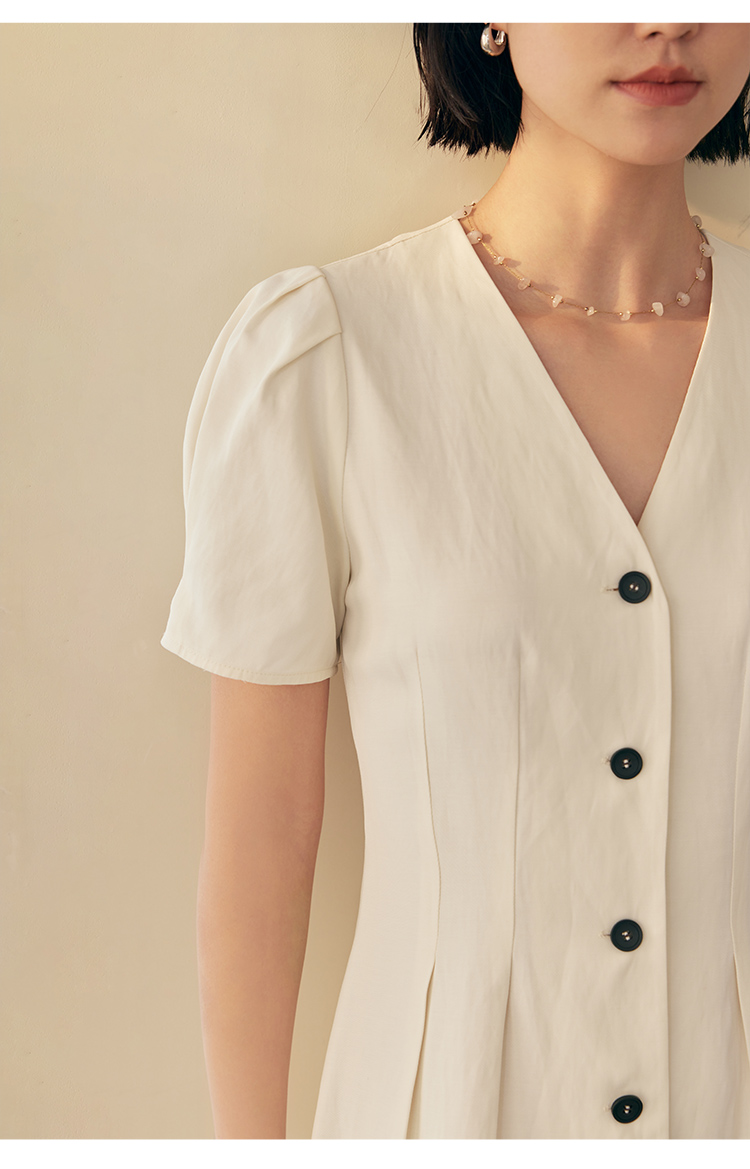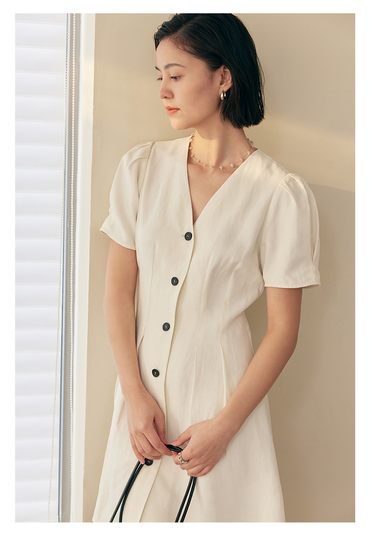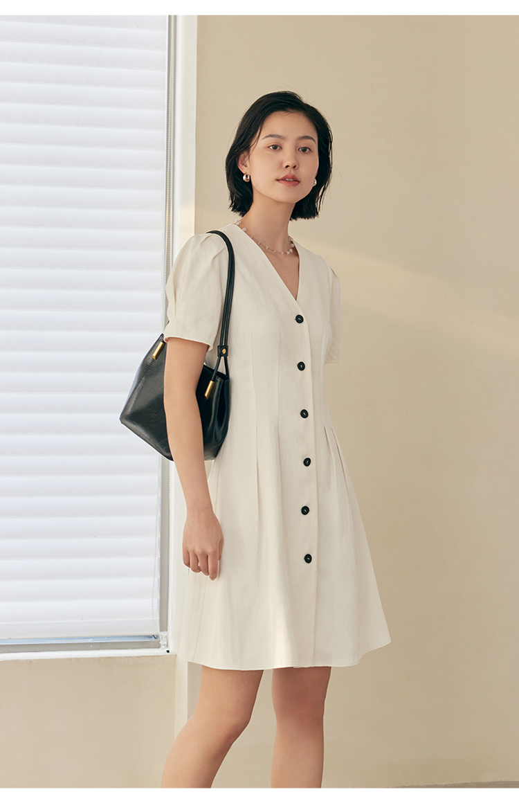 HeyDress白色连衣裙女夏季法式V领收腰设计感通勤气质短款A字裙子