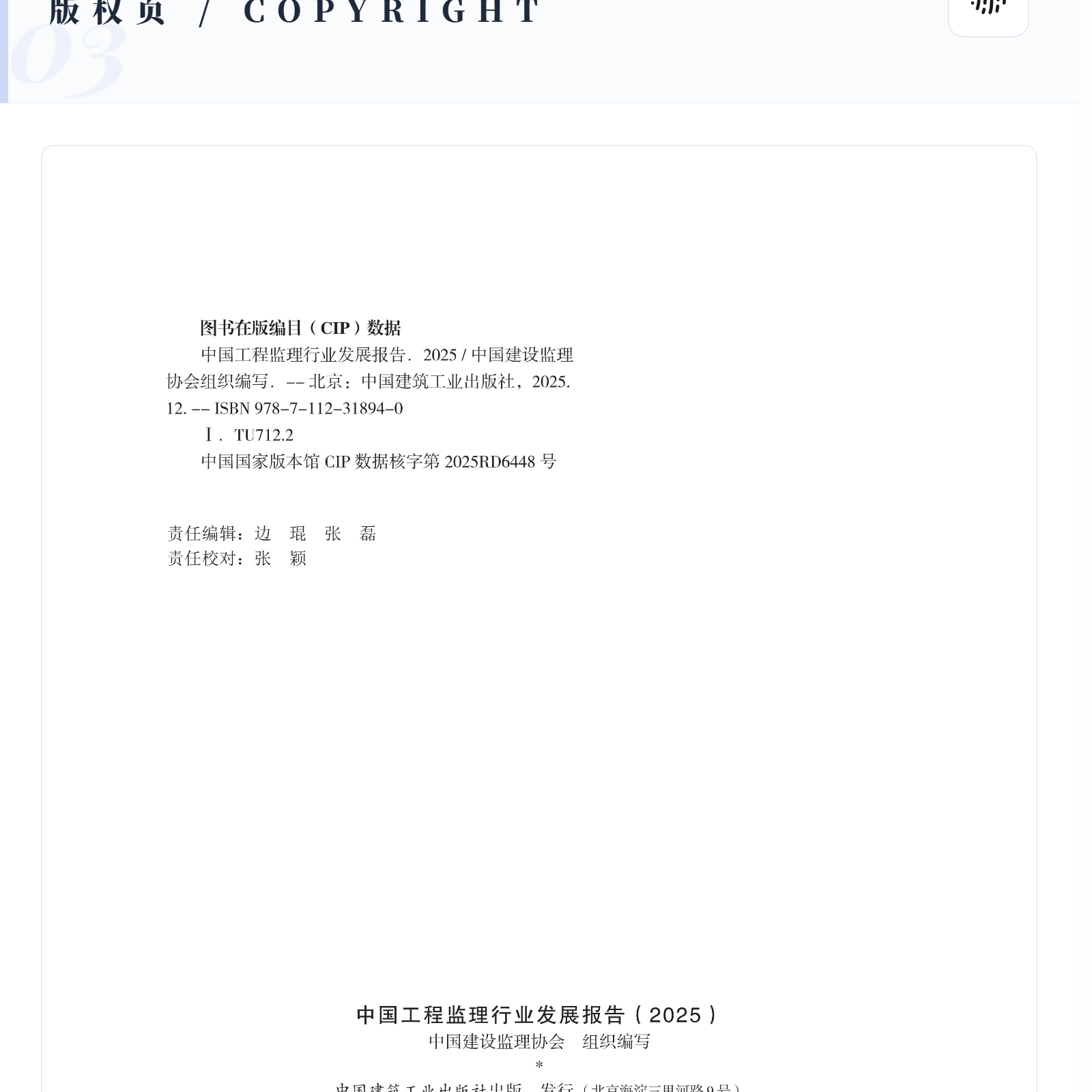 书名:中国工程监理行业发展报告(2025)