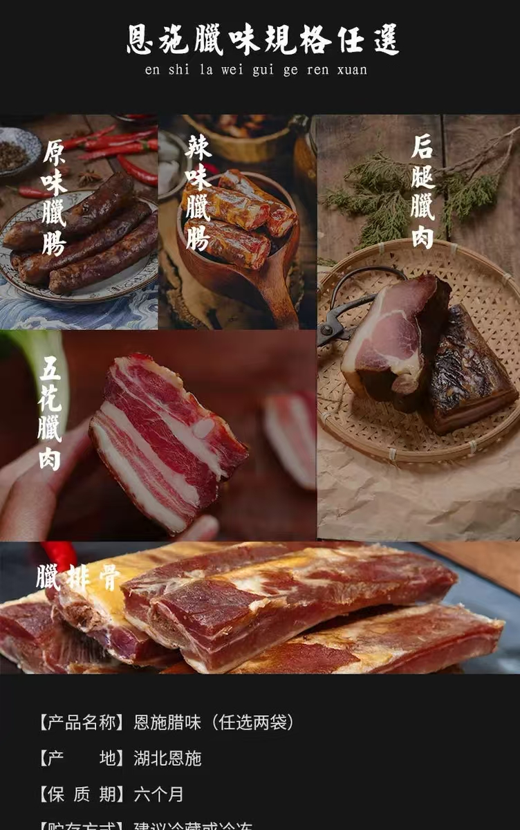【爆品回归】年的味道 老炕果木熏制 | 湖北恩施土家土猪腊味腊肉腊肠 腊肉五花/腊味香肠/腊排骨/腊猪腿肉 原味/辣味 食材 多规格 450g袋装