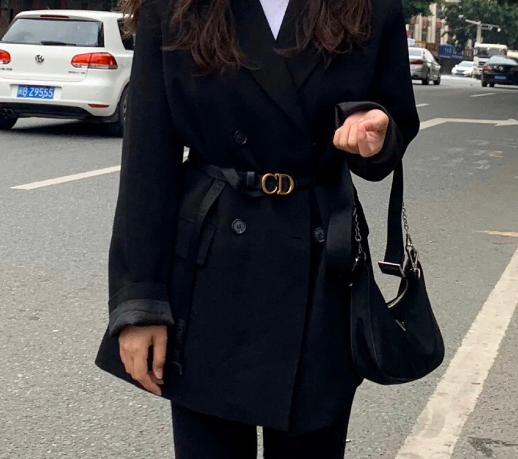 如果你觉得之前cd那款织带不显高档,可以入这款,超级百搭,而且是春夏秋冬的百搭,春天搭西服,搭牛仔,秋冬可以搭大衣,可以迅速起到束腰的功能,还可以调整身体比例,达到完美的3:7,显腿长,还自带设计感,买它就对了