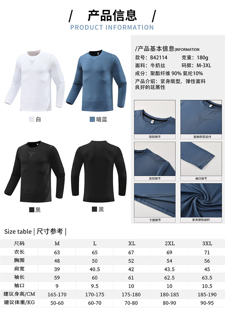 跃牌【跃LEAP-ACTIVE】系列 秋冬新款圆领长袖骑行运动T恤男上衣B42114