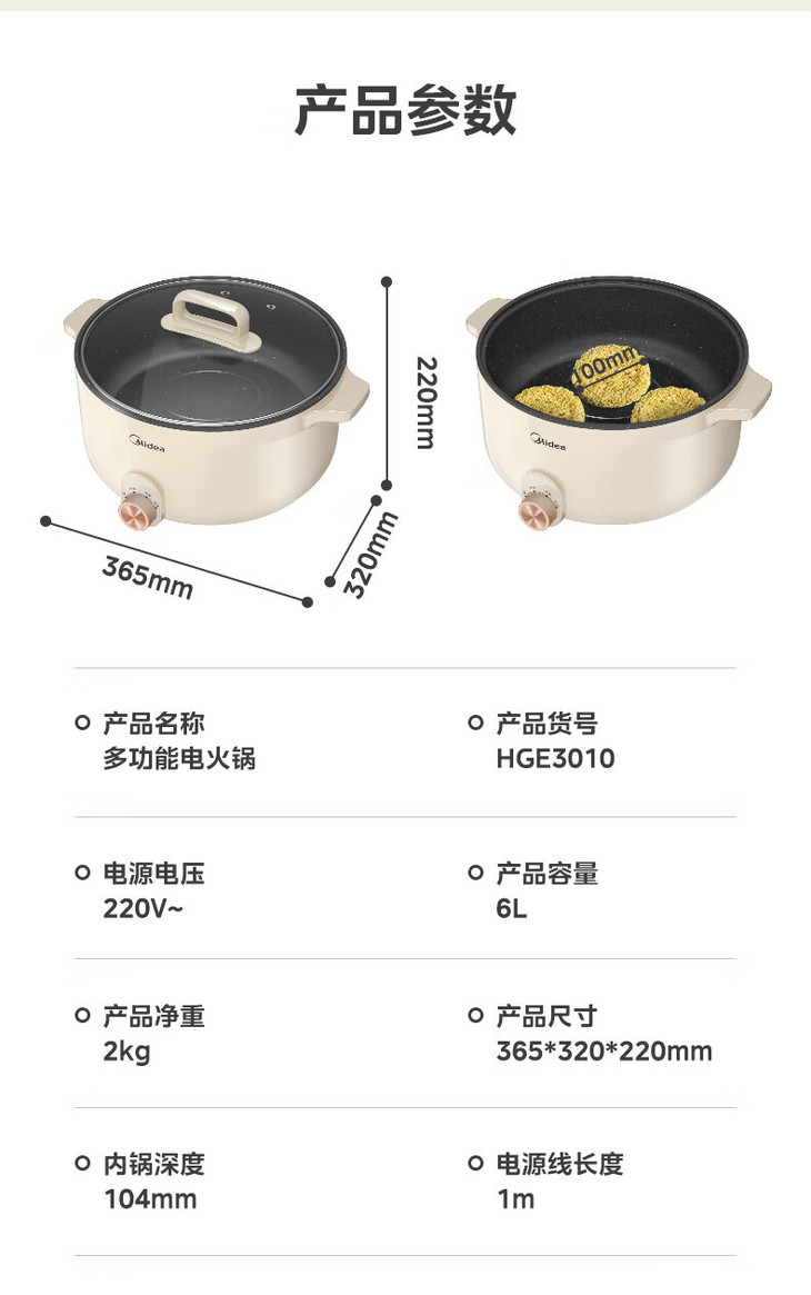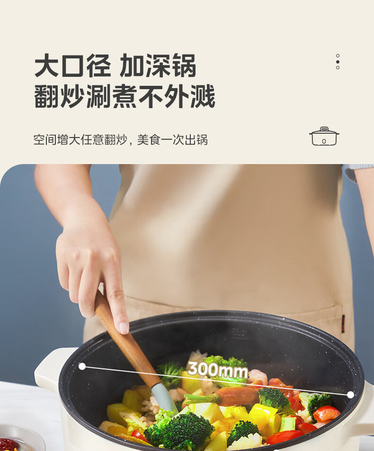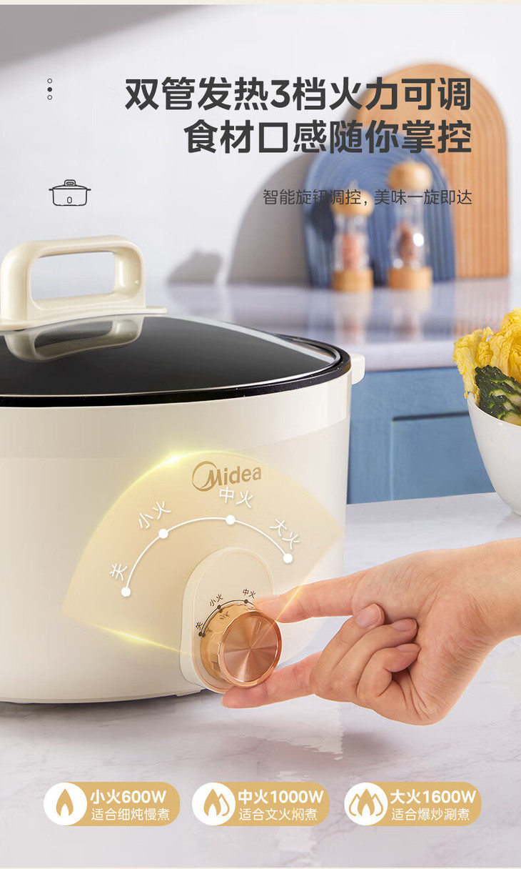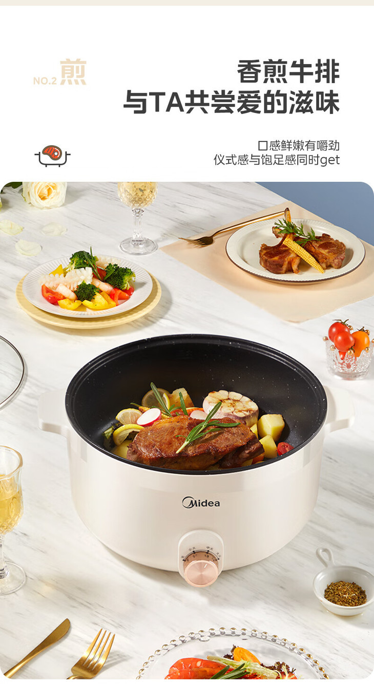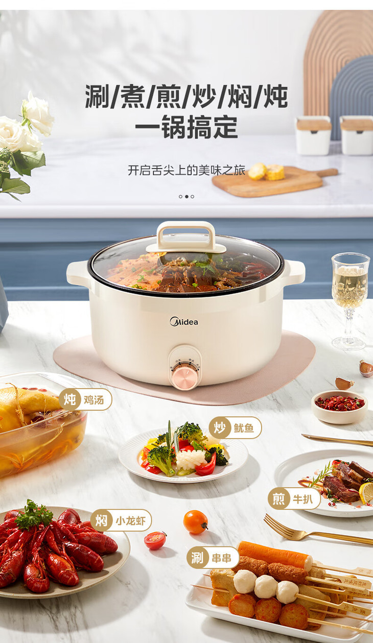 【美的 MC-HGE3010电炒锅】电煮锅电蒸锅多功能锅家用大容量炖蒸煮一体锅