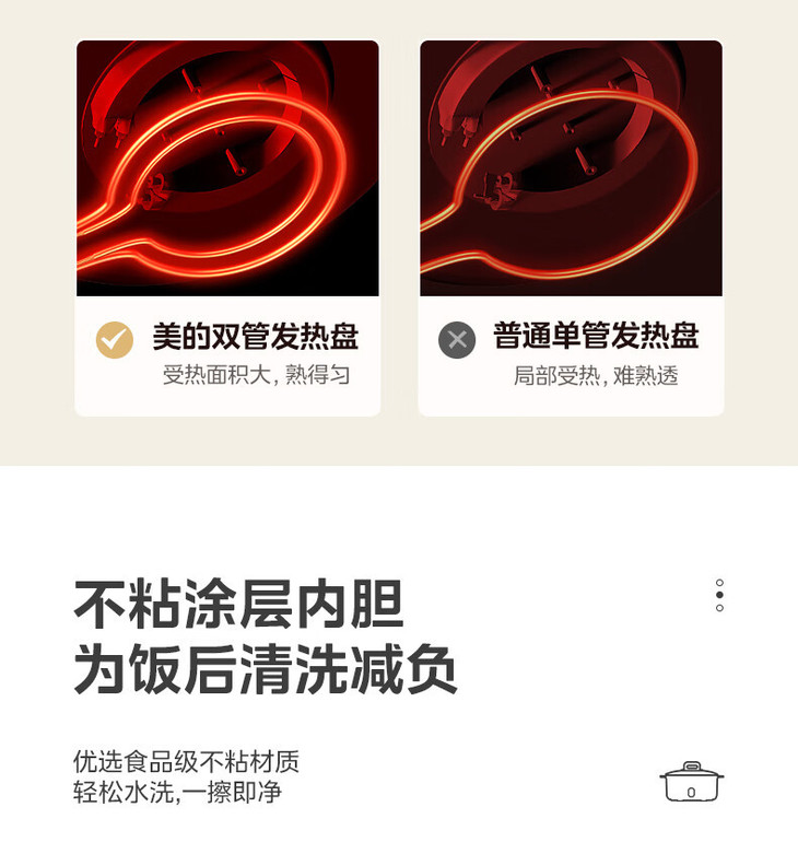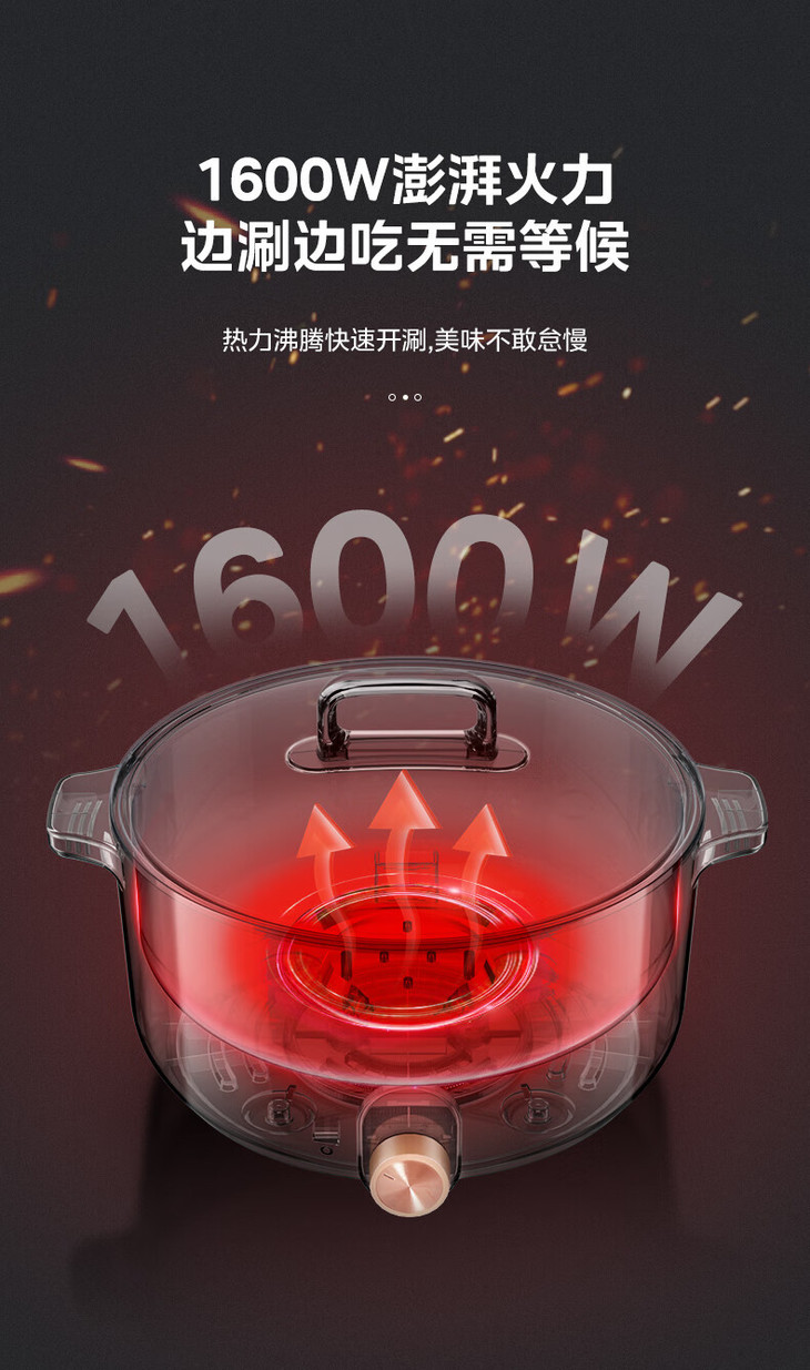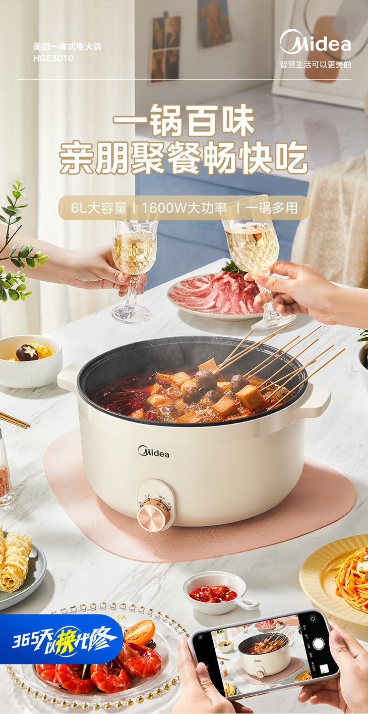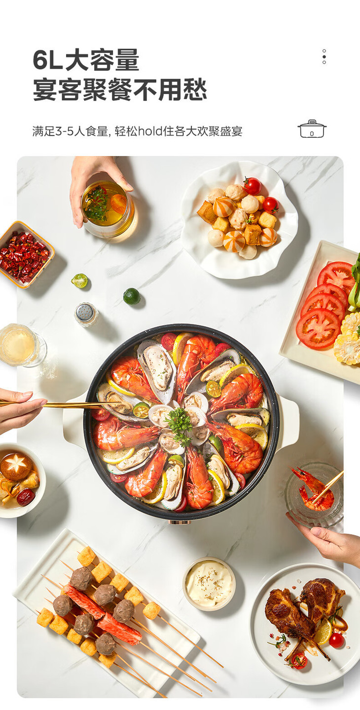 【美的 MC-HGE3010电炒锅】电煮锅电蒸锅多功能锅家用大容量炖蒸煮一体锅