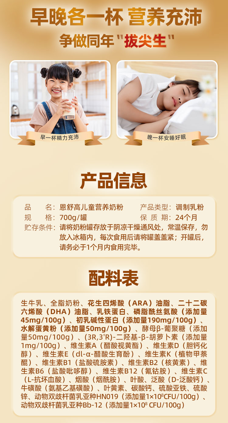 SY24-1版(谱华威)荷兰乳牛恩舒高儿童营养奶粉-700g听装