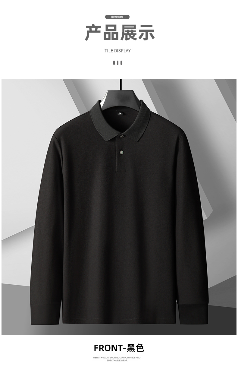 【圈】【丝光棉100%】【新款DK】大依优型大码长袖Polo衫翻领净版纯棉纯色男士加肥加大休闲大码男装宽松长袖体恤上衣