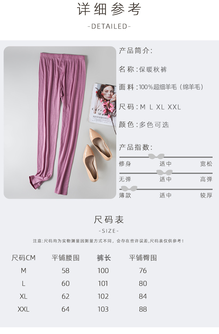 雀说 100%超细羊毛保暖女士秋裤高弹松紧腰舒适不勒经典修身打底裤CK-020