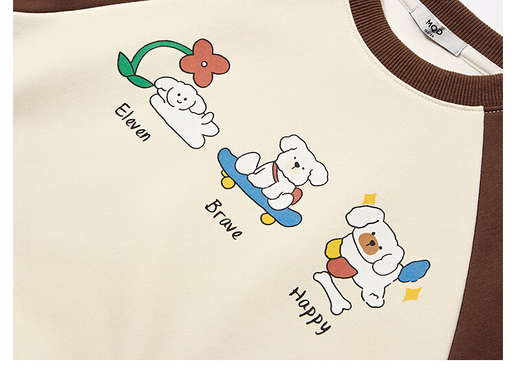 【MQD】童装女大童春新款学院风插肩袖卡通休闲圆领卫衣