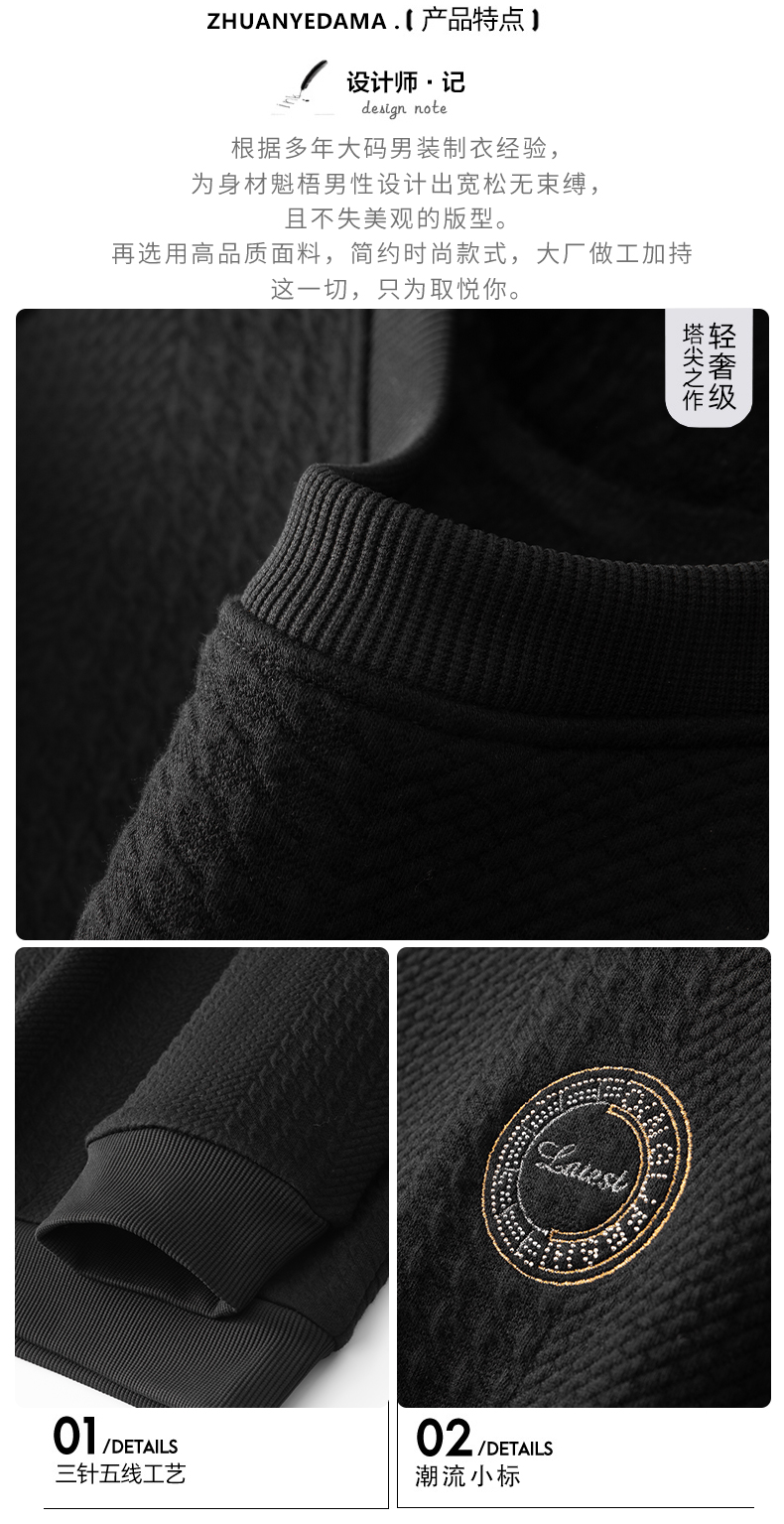 【新款DDA】大依优型大码圆领长袖卫衣加肥加大宽松休闲上衣男士打底 商品图3