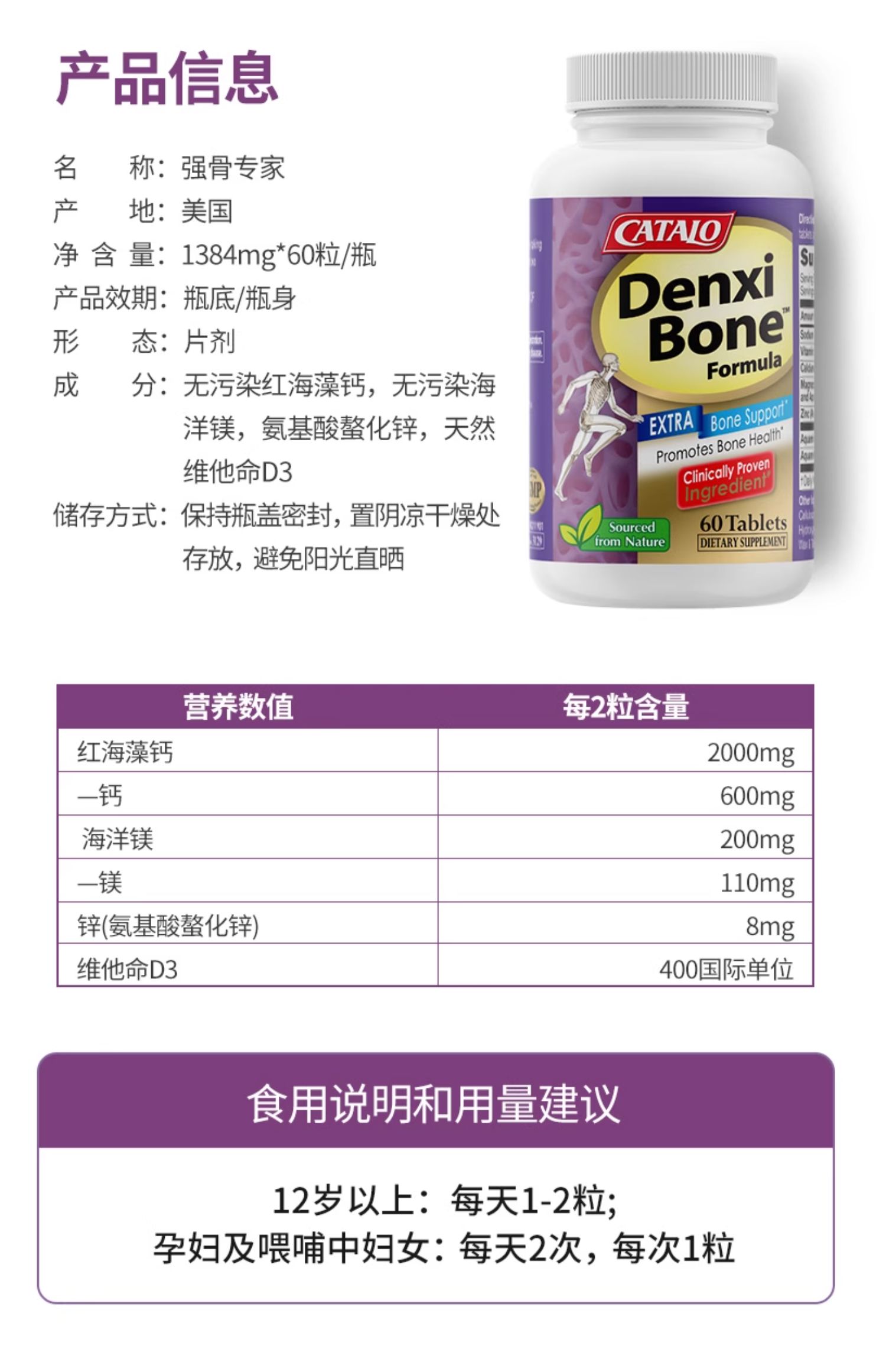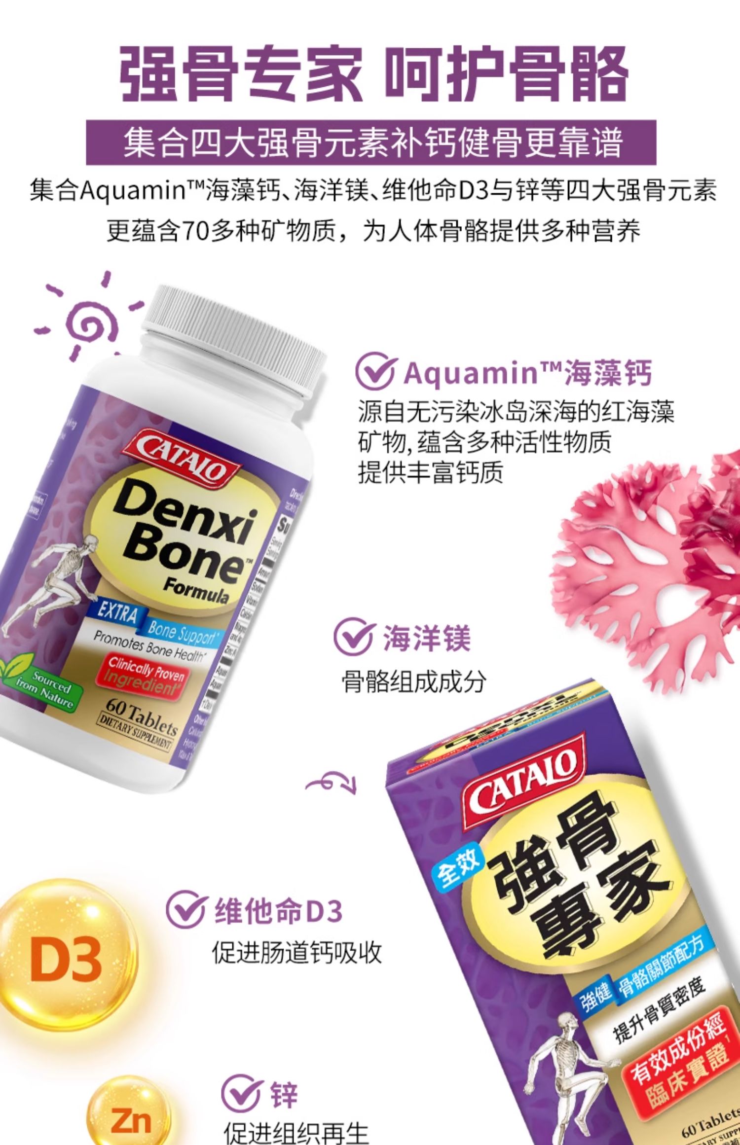 CATALO家得路强骨专家 强健骨骼关节中老年补镁钙镁锌片(保质期2026.10)