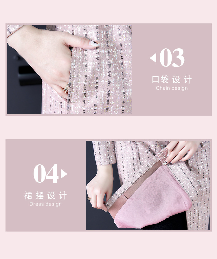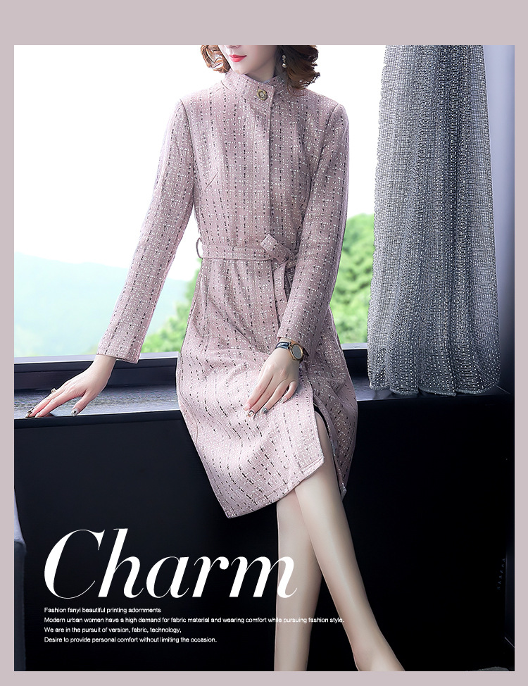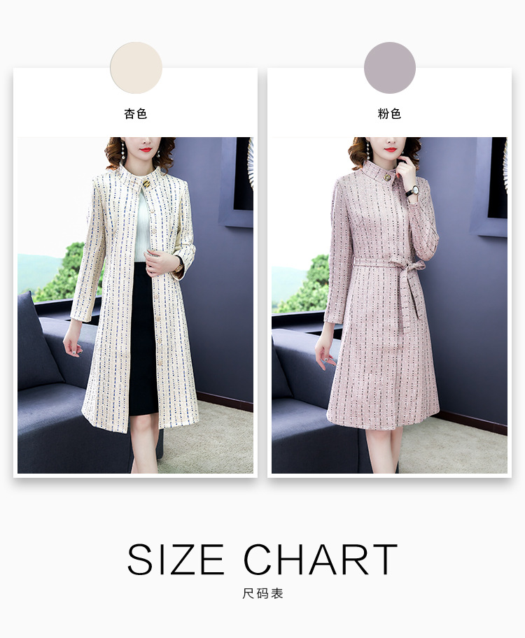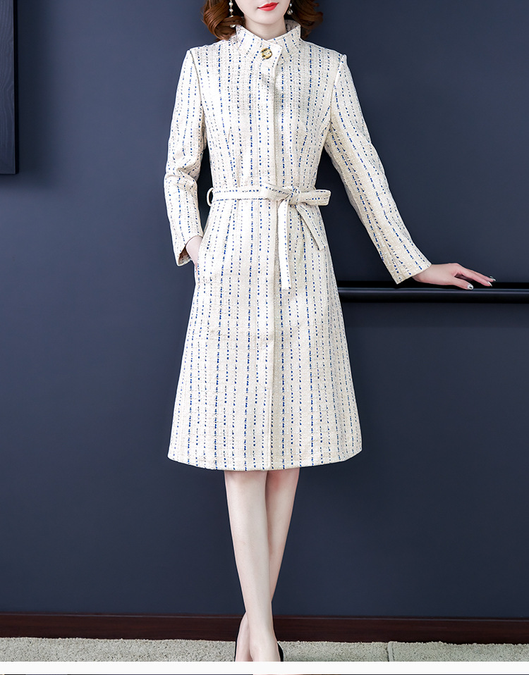 NYL-426786秋冬新款流行白色条纹系带显瘦过膝大码女式外套