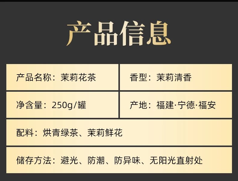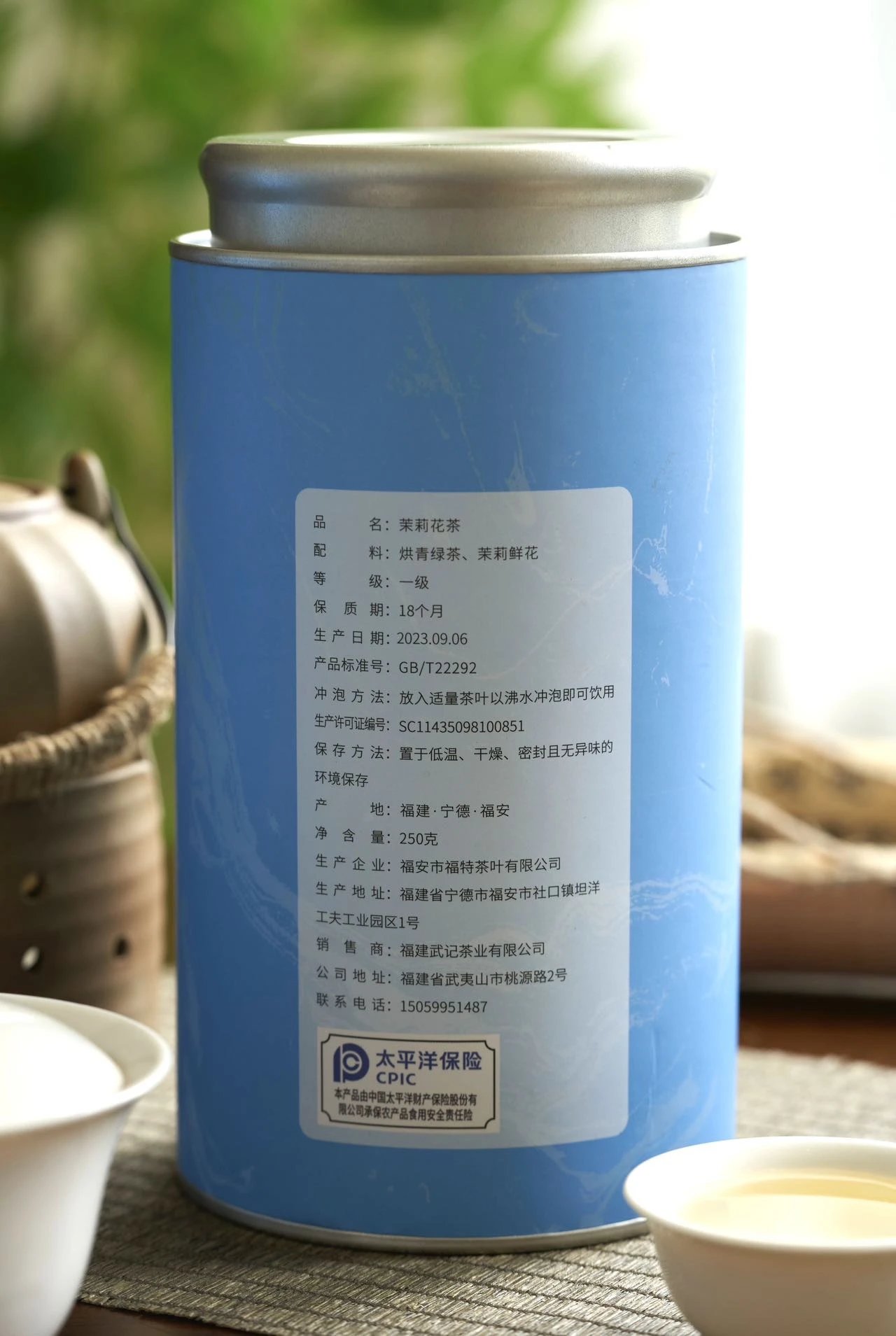 【品名】:卧芳华蓝罐茉莉花茶 【原料】:烘青绿茶、茉莉鲜花 【净含量】:250g*2 【储存条件】:置于低温、干燥、密封且无异味的环境保存 【保质期】:18个月 【生产日期】:2025.09.06 【发货快递】:圆通、韵达、中通随机发 【发货时效】:3-5天 【快递公司】申通/韵达/中通随机发 【发货地区】西四省+15元/件(青海,甘肃,内蒙,宁夏) 【不发货地区】:新疆西藏不发 【售后标准】:食品类不支持7天无理由退货,收货请当面验收,如遇到破损、少件、错发等情况,务必在签收24小时内申请售后,