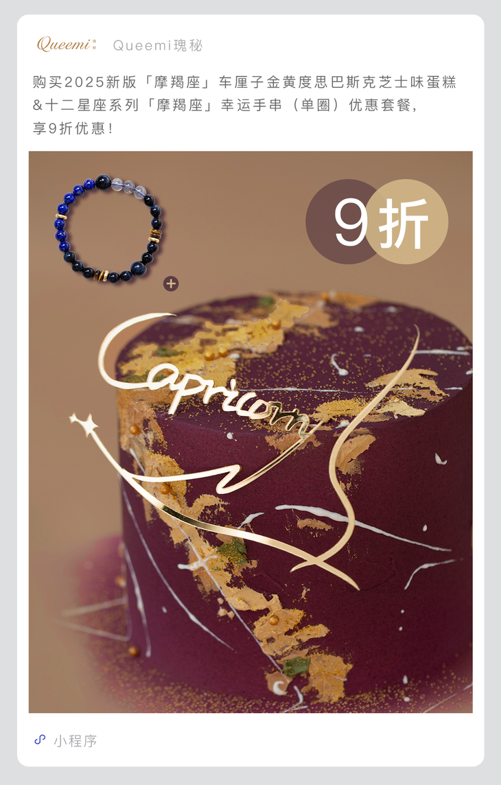 9折优惠| 2025新版「摩羯座」车厘子金黄度思巴斯克芝士味蛋糕&「摩羯座」手串