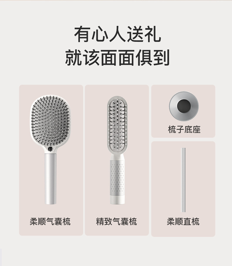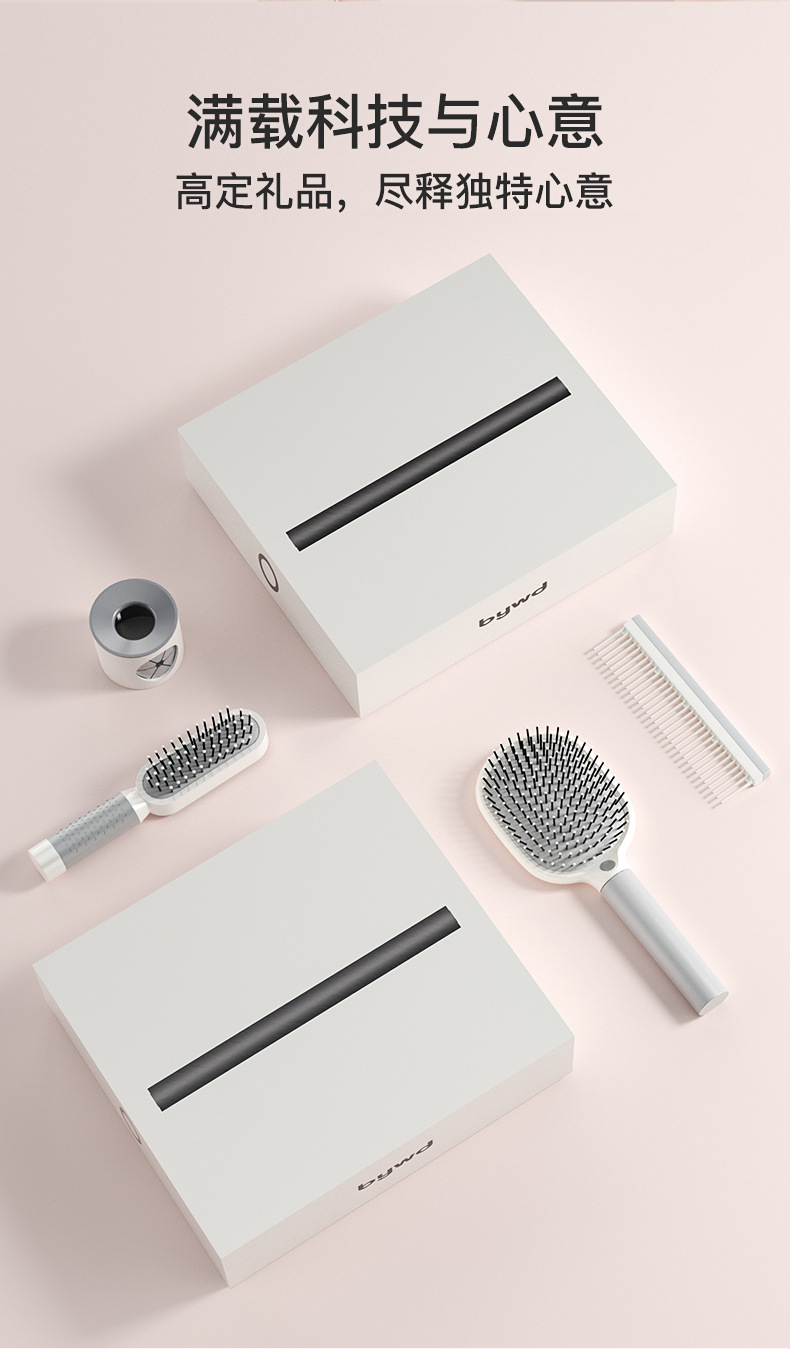 情人节好礼!【全新甄奢体验,柔顺梳礼盒系列】梳子女士气囊梳 专用长发气垫梳 家用防静电蓬松便携 头皮按压按摩梳-QQ