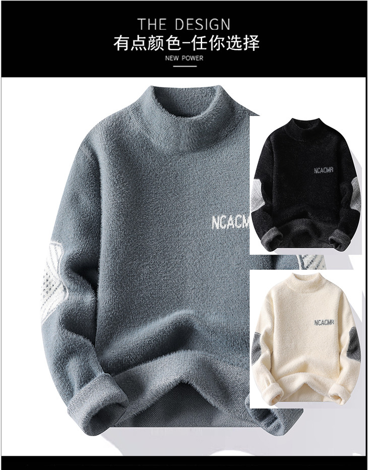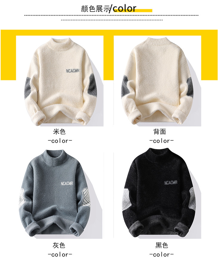 水貂绒男士毛衣秋冬款打底衫加绒加厚羊绒衫保暖衣冬季男装上衣服YCL-736-8142