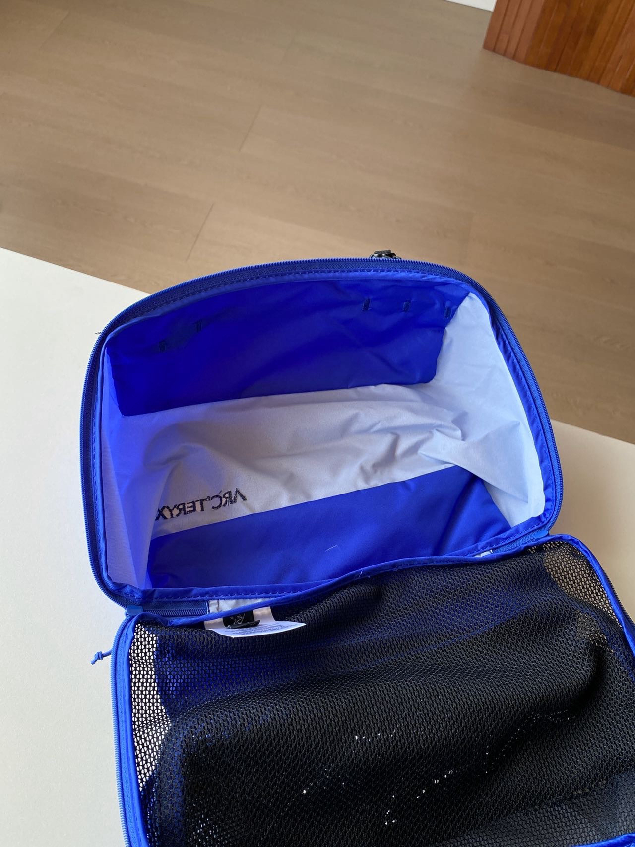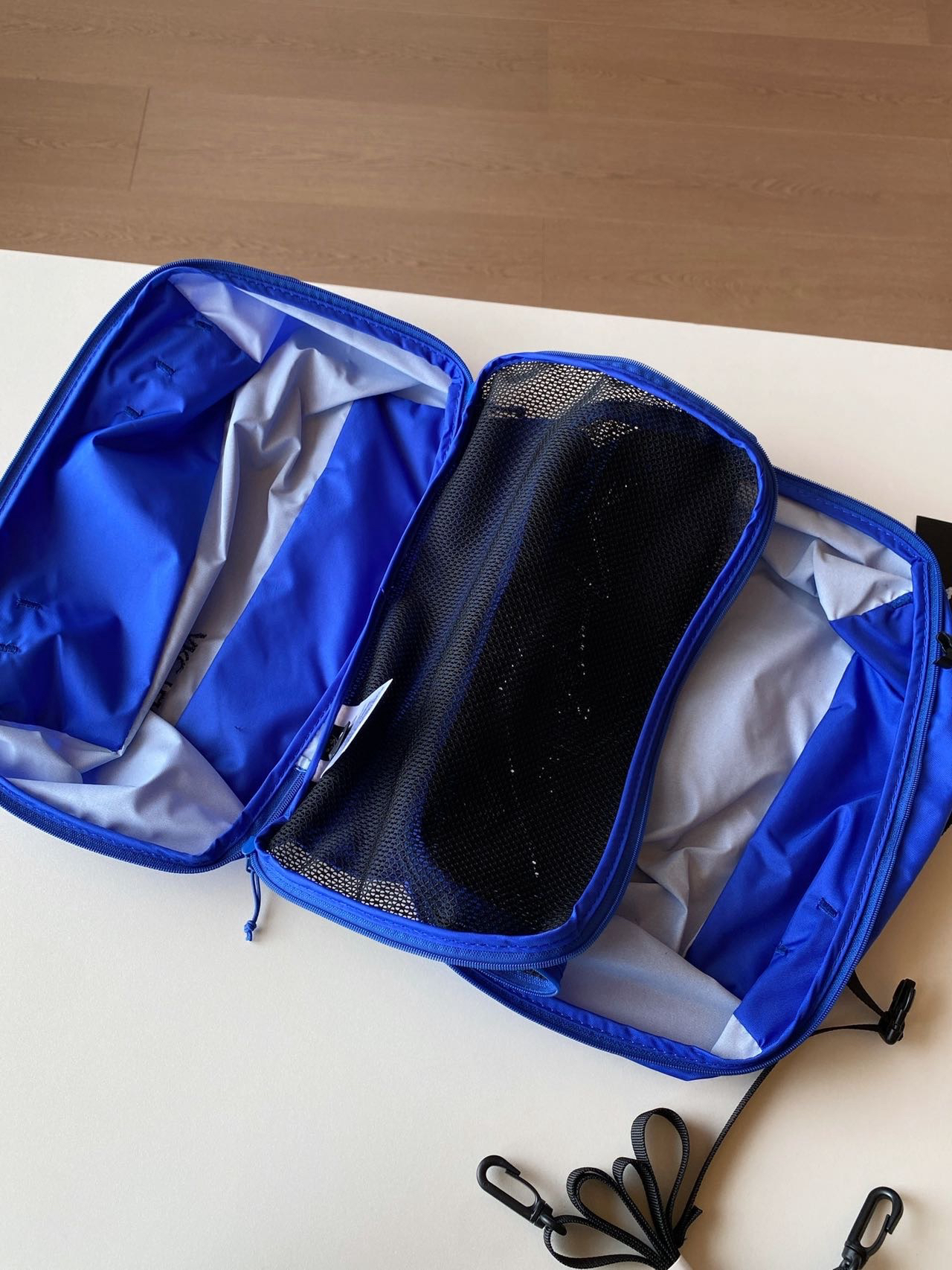 提供整理和收纳功能,还可用于将干湿物品隔开,大logo点缀打开也超亮眼的,还自带多个绑带点也方便携带其他物品