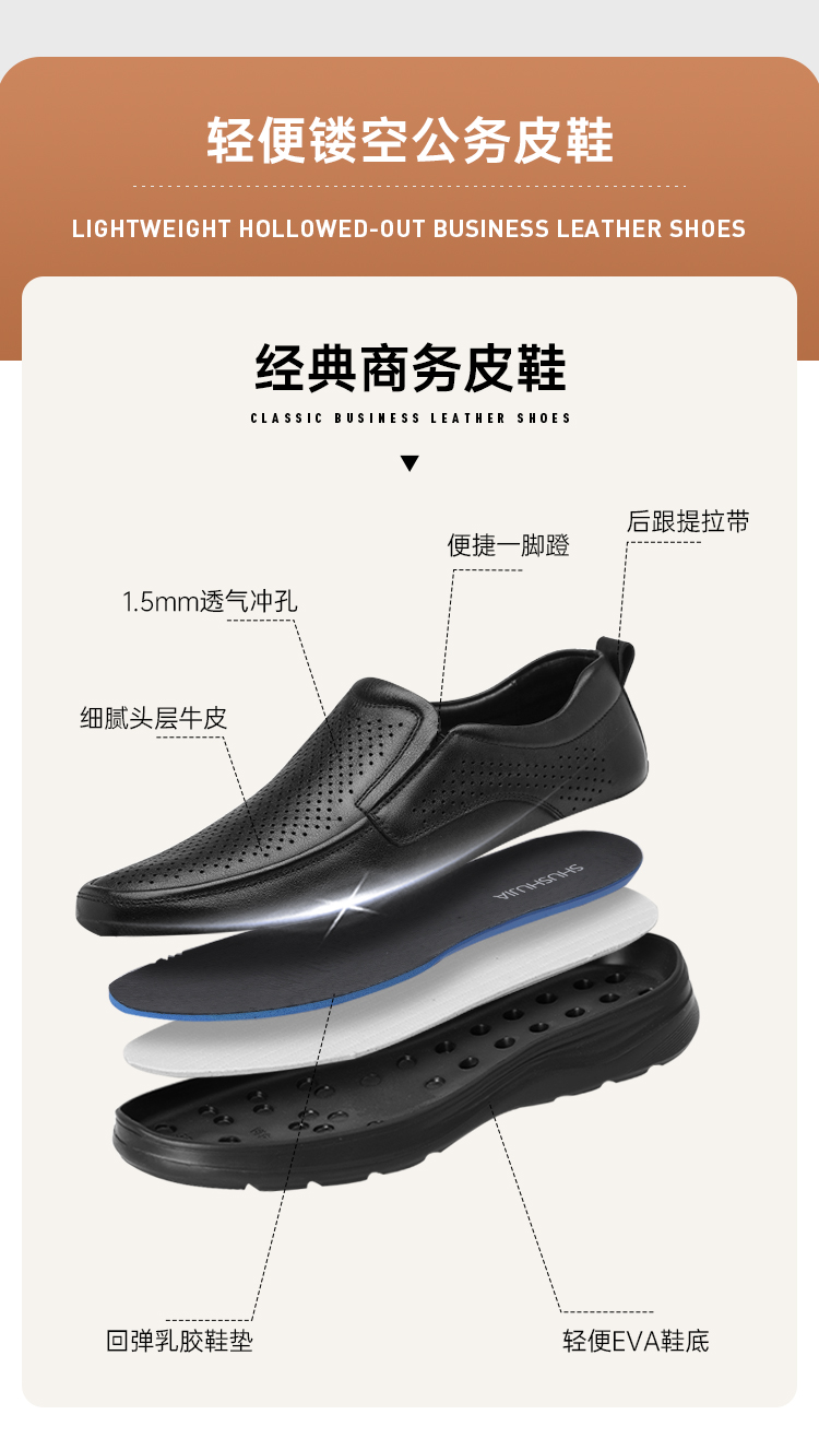 【轻便镂空皮鞋】透气镂空牛皮皮鞋 夏日商务通勤凉皮鞋