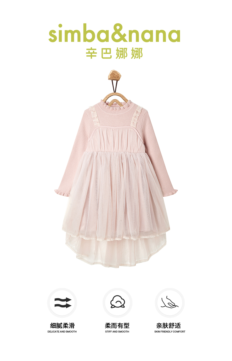 【辛巴娜娜】simbanana【大童】女童毛衣裙秋冬款儿童装洋气宝宝长袖针织加厚连衣裙