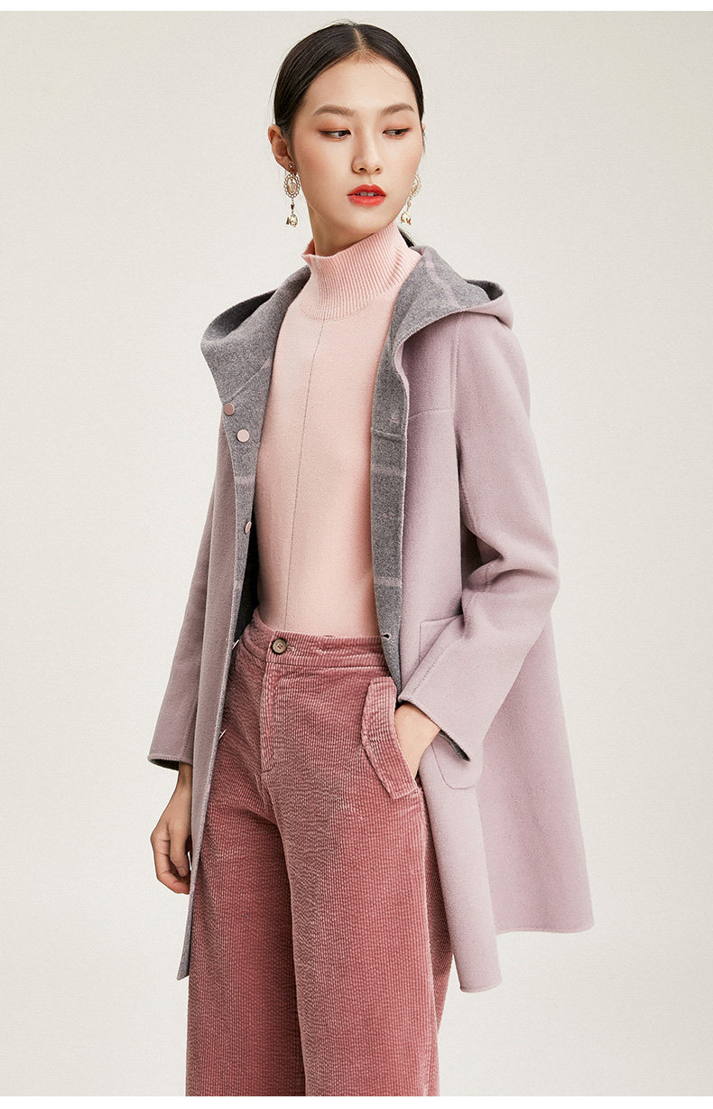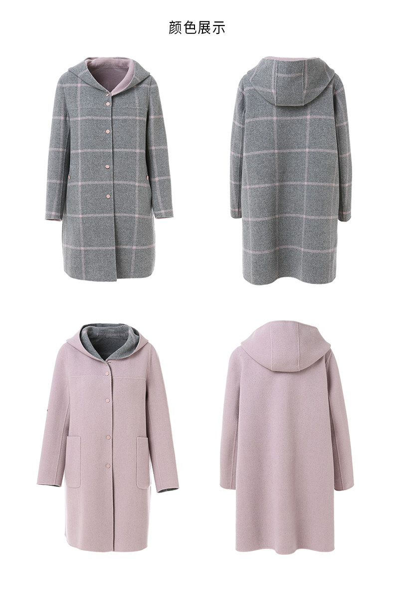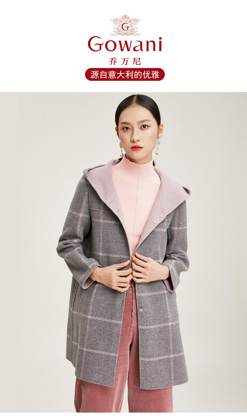 乔万尼双面呢大衣女流行呢子大衣小个子中长款两面穿连帽外套EN4A727