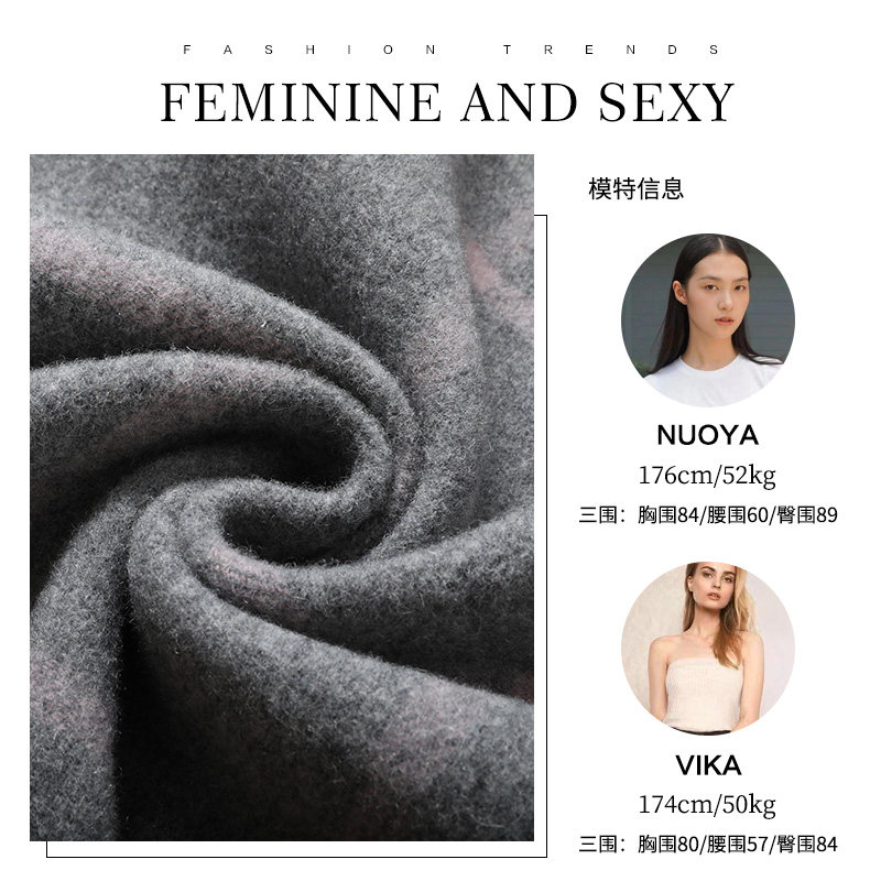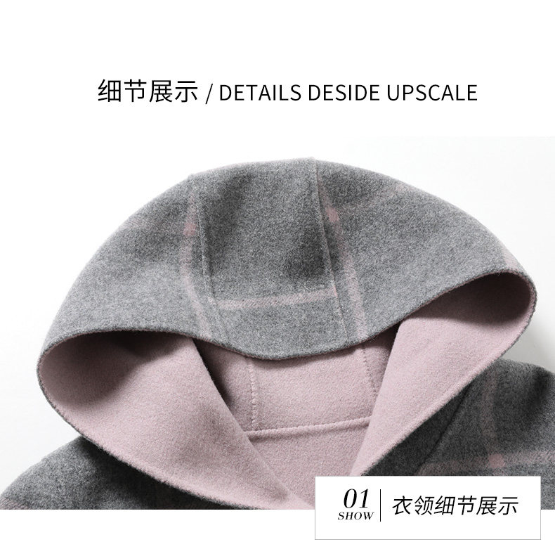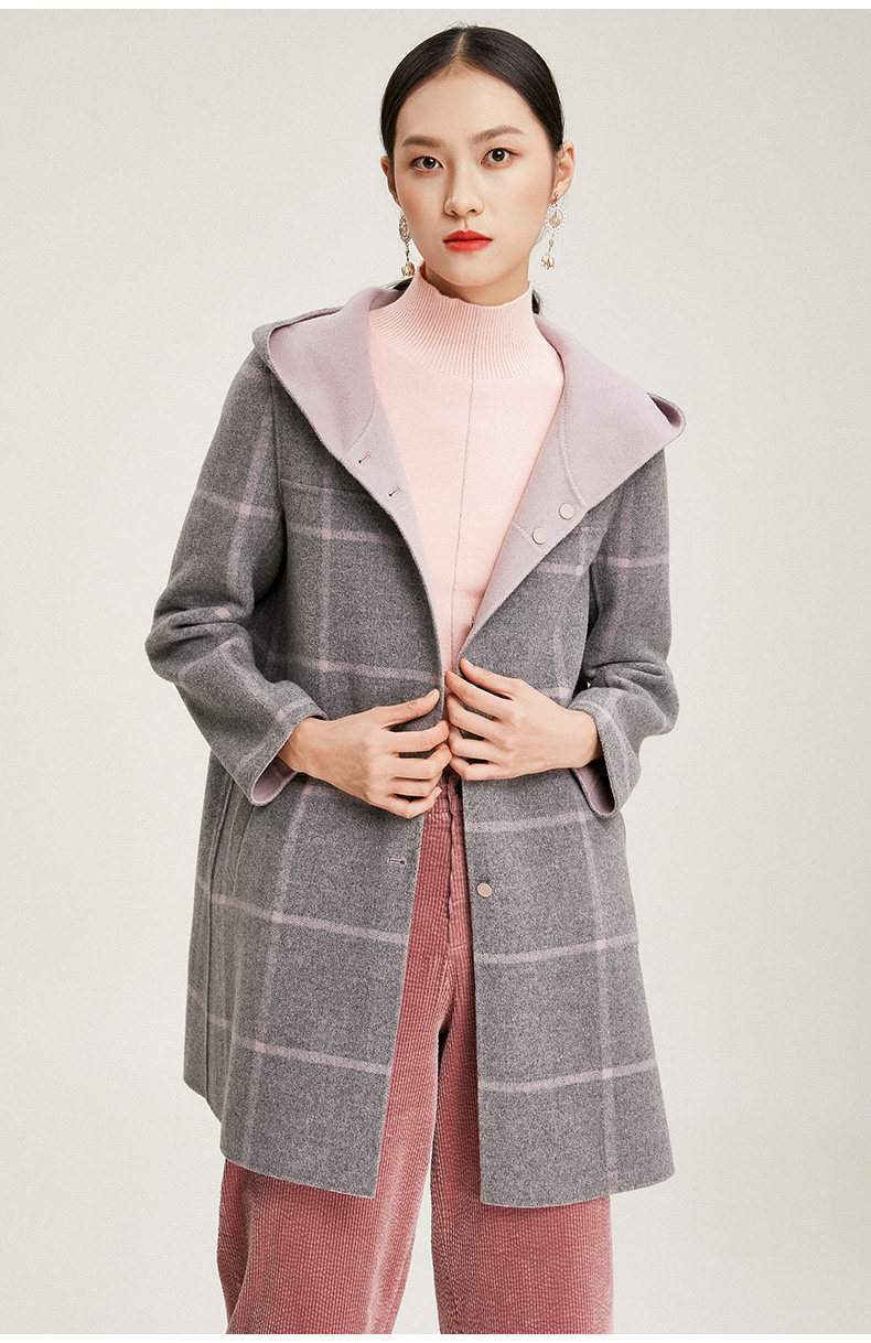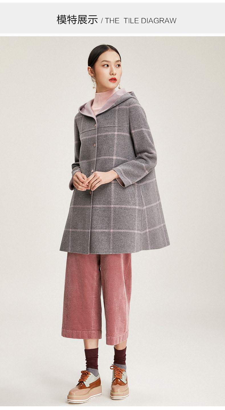 乔万尼双面呢大衣女流行呢子大衣小个子中长款两面穿连帽外套EN4A727