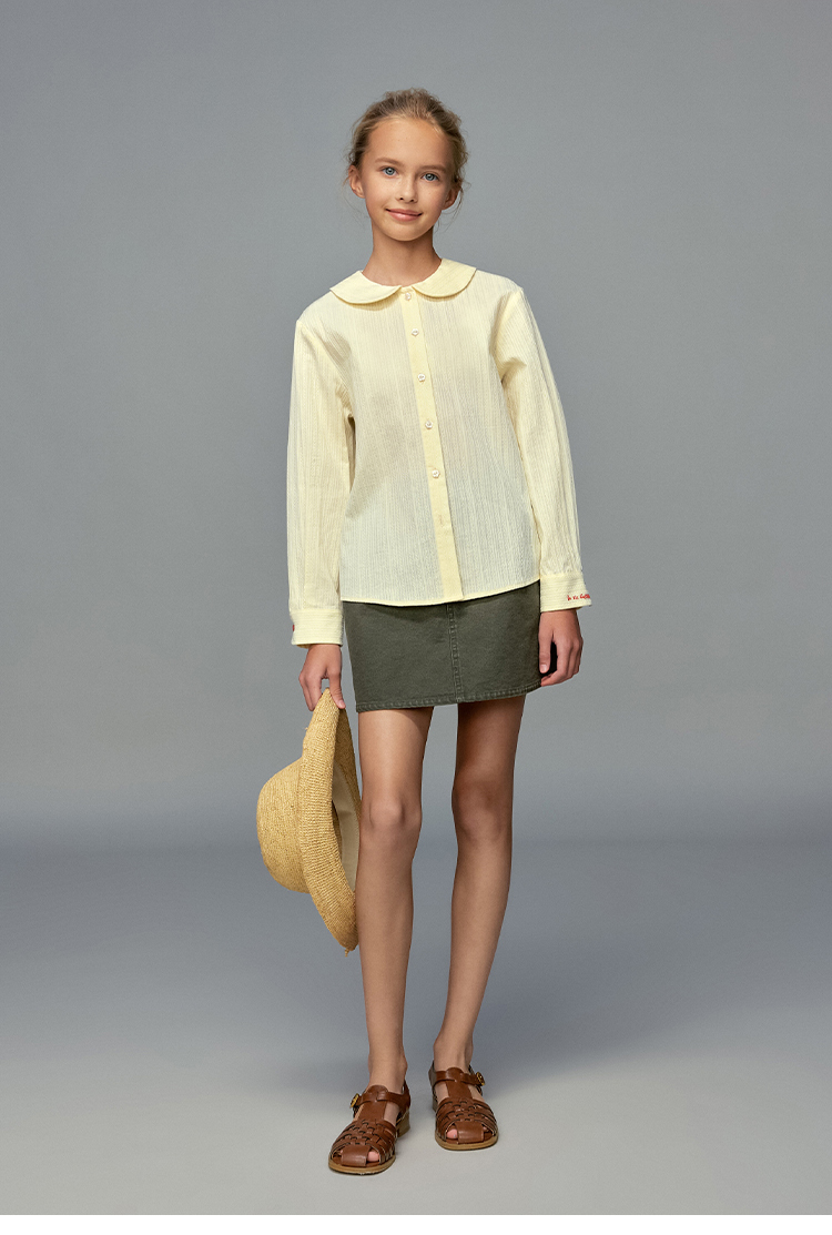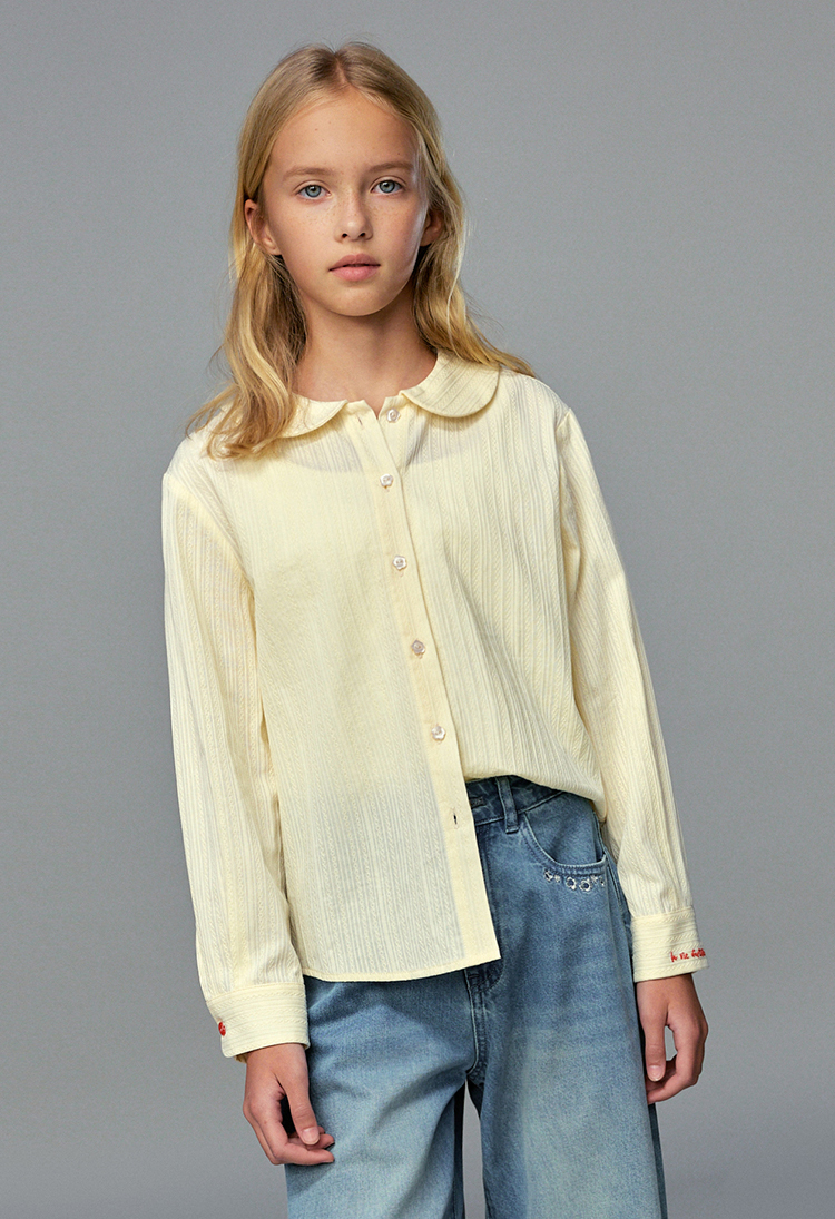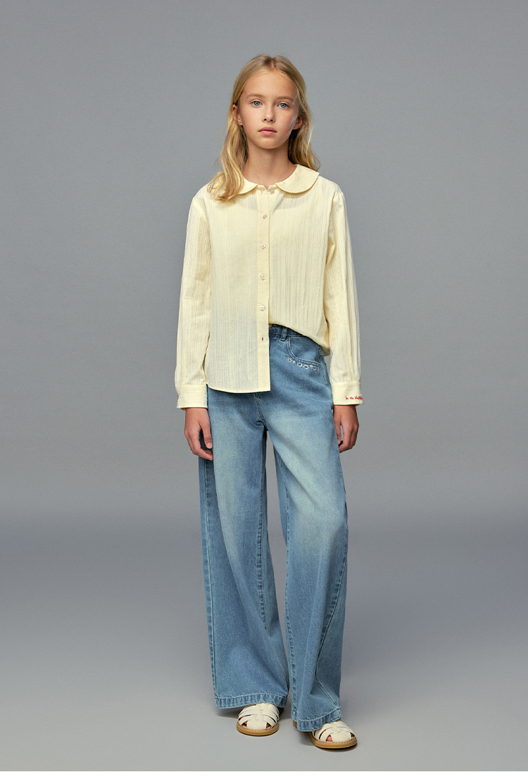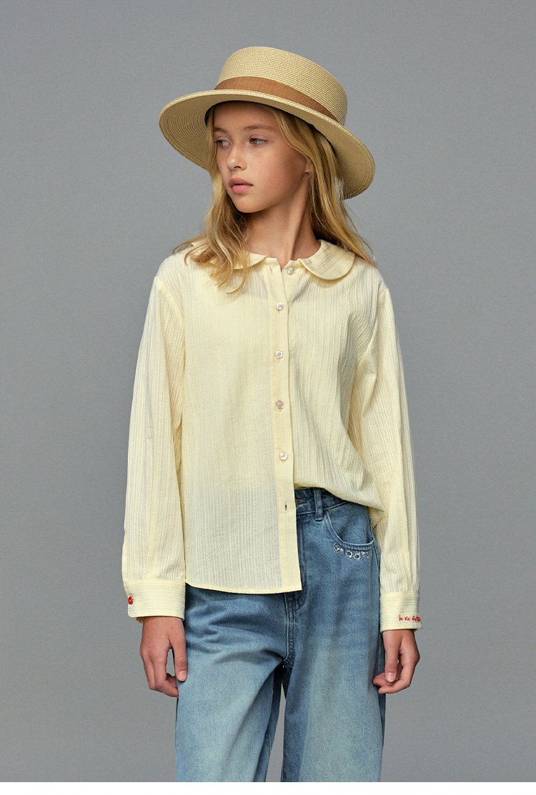 💕春3童装法式棉布刺绣娃娃领甜美长袖衬衫