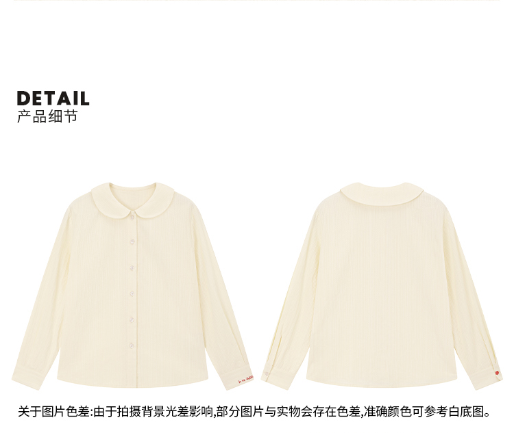 💕春3童装法式棉布刺绣娃娃领甜美长袖衬衫 商品图3
