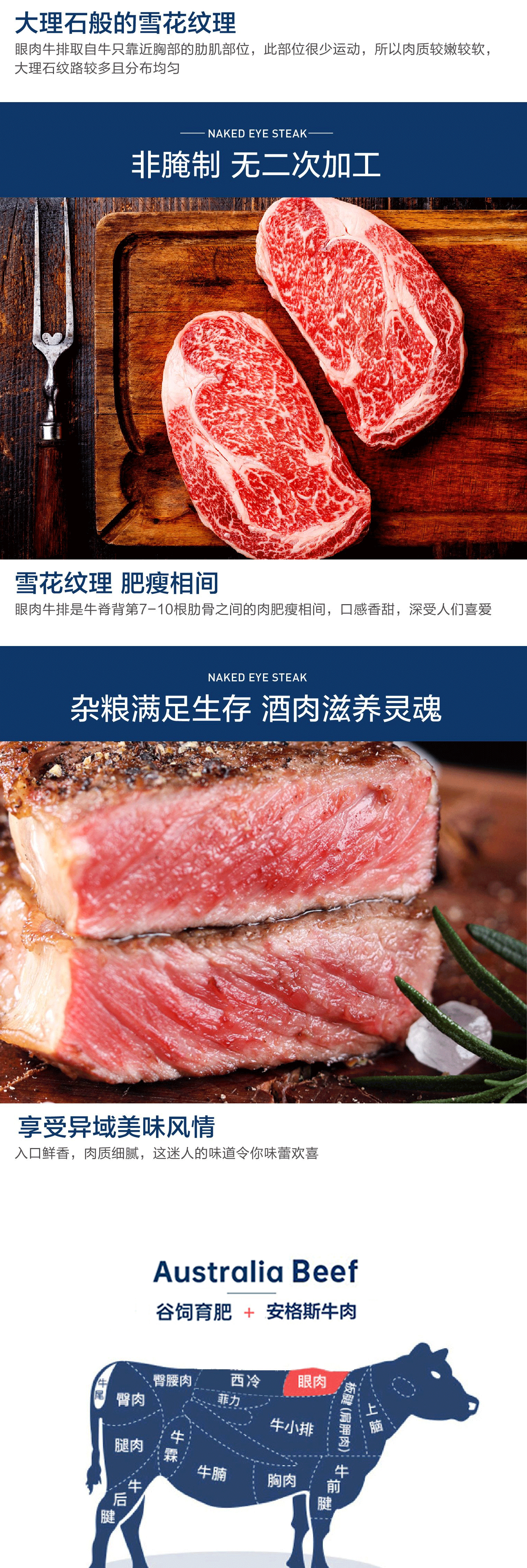澳洲Ji佳级谷饲安格斯 眼肉牛扒 雪花牛扒 肉质细密鲜嫩 适合煎食.烧烤 500g装