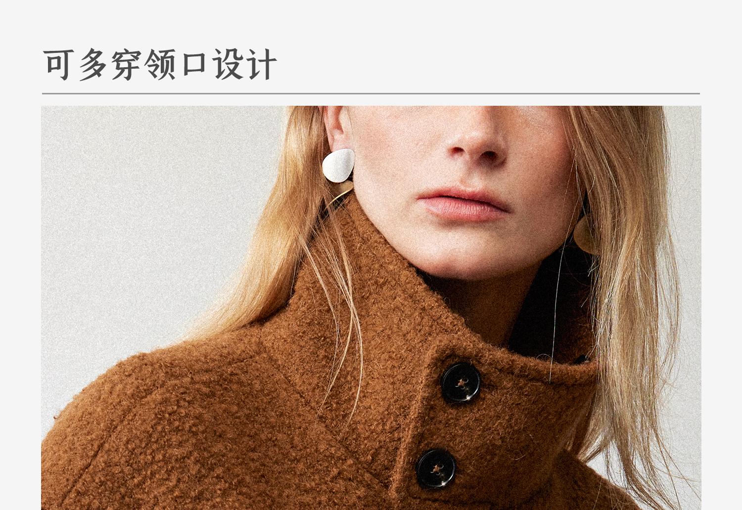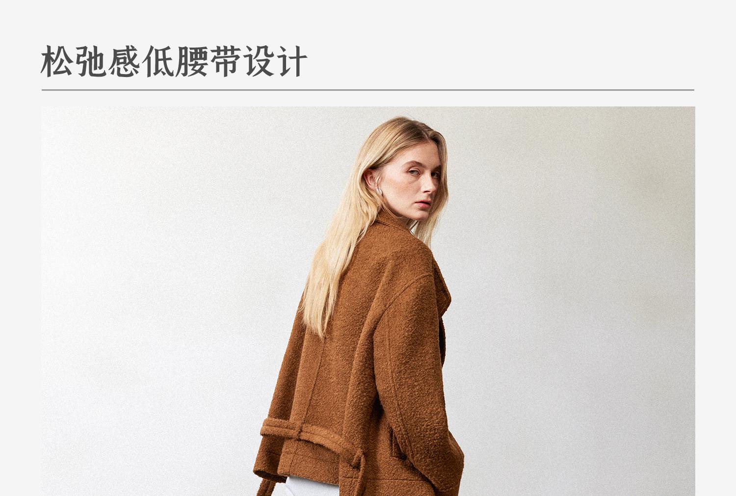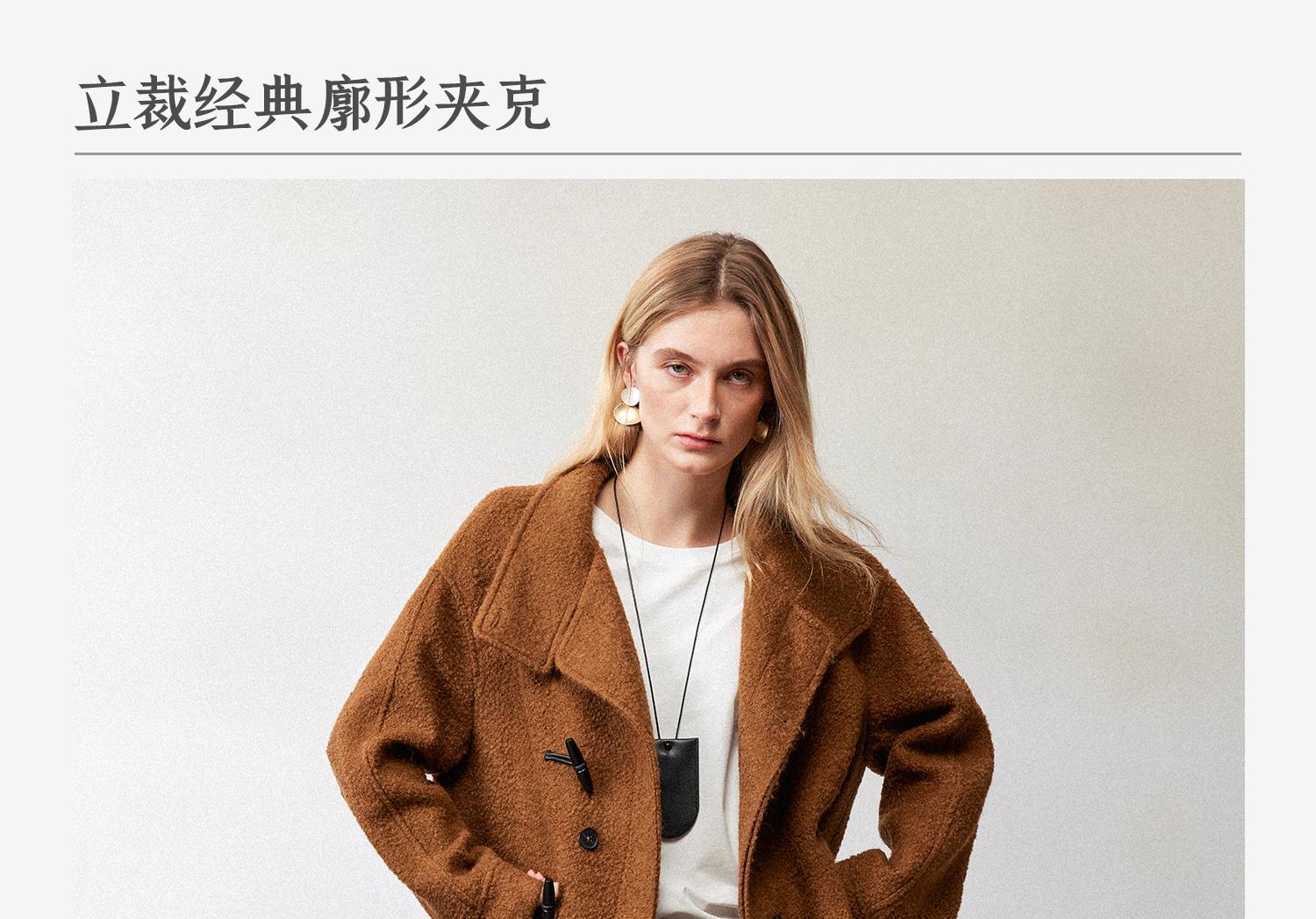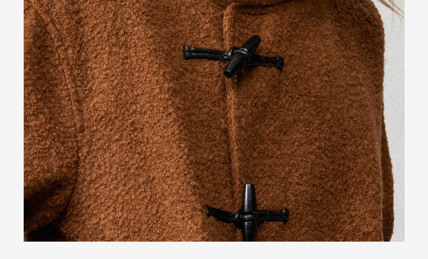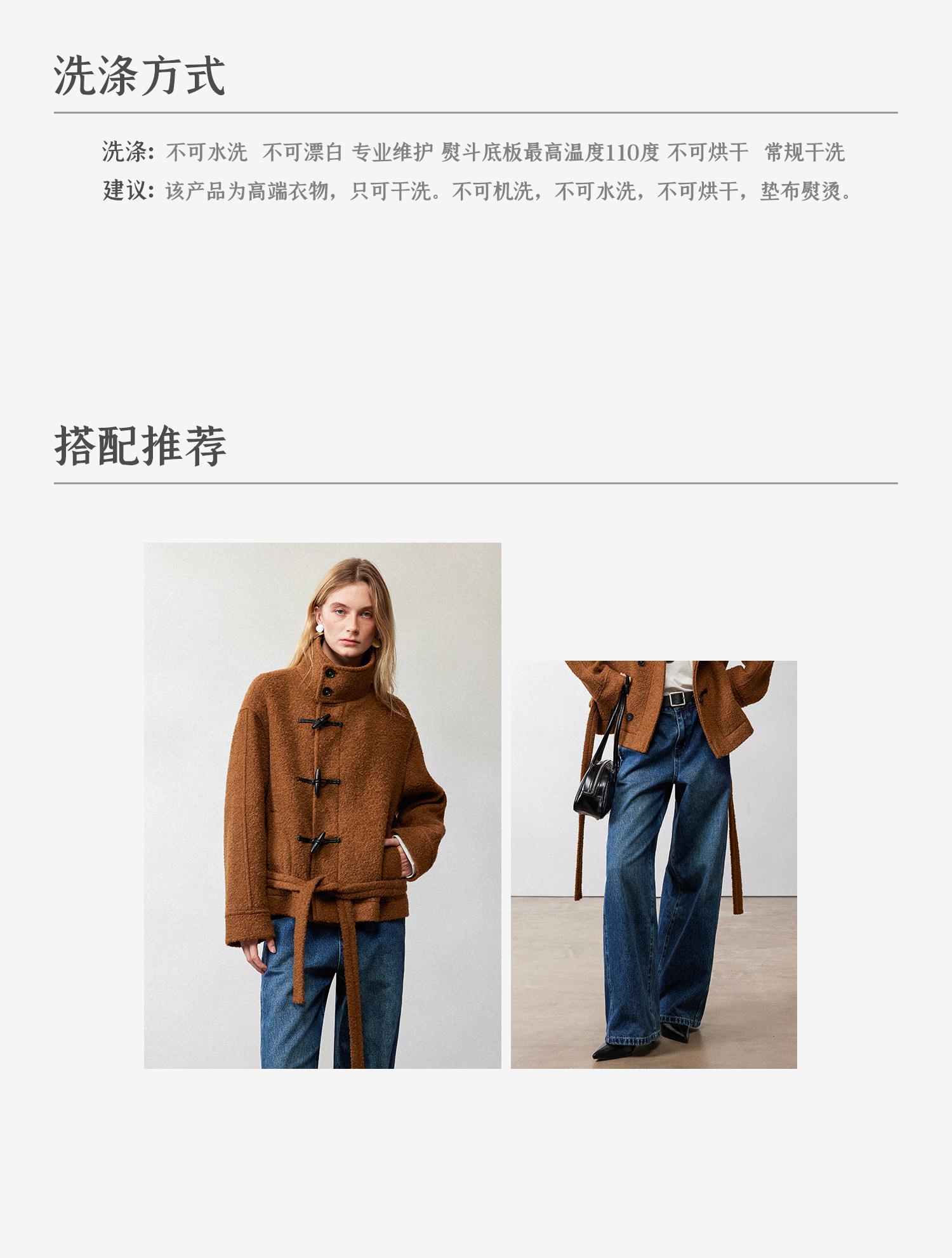 西嘉慵懒松弛感JI简圈圈马海毛混纺立领落肩牛角扣短外套大衣女(货号:DY2404005)