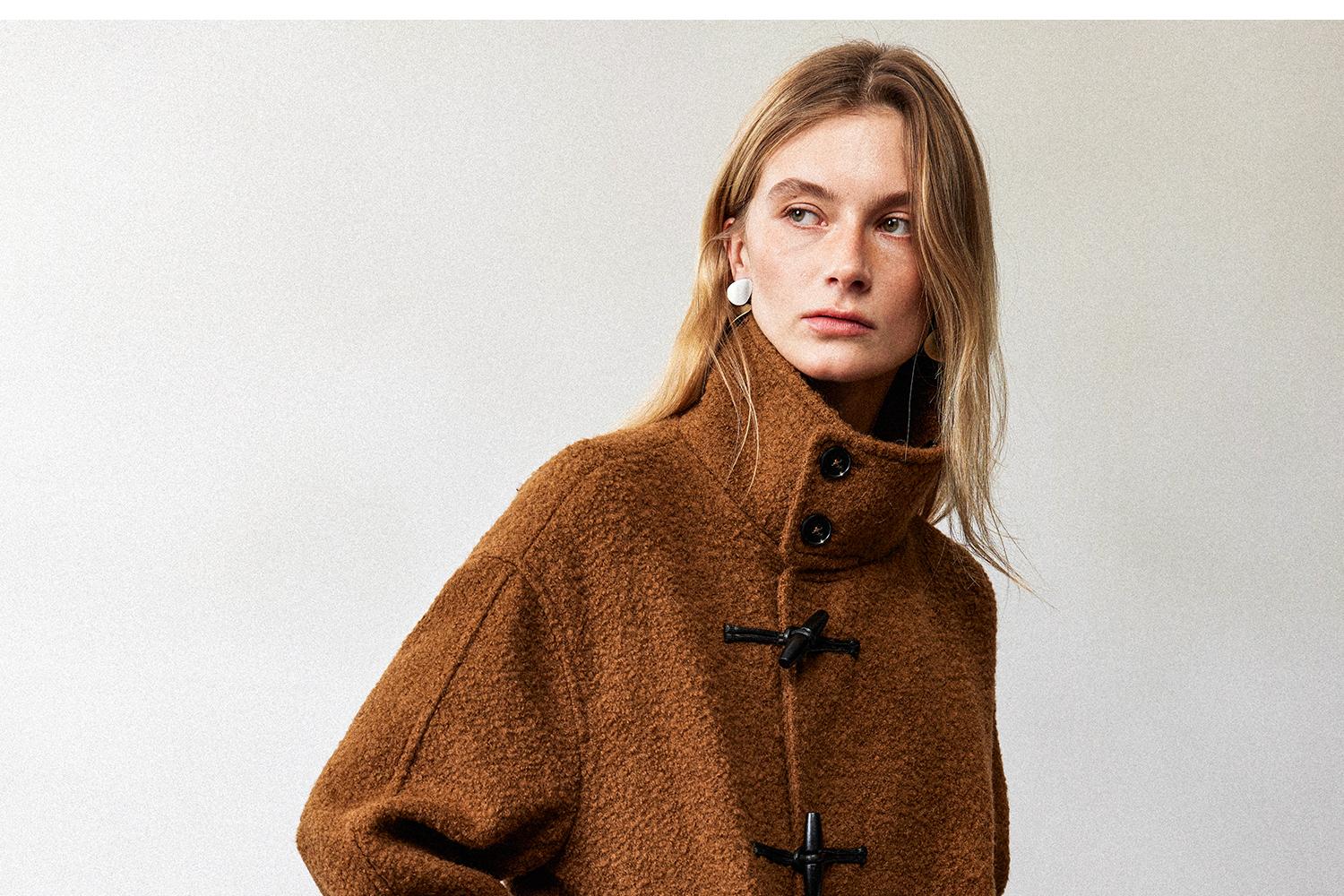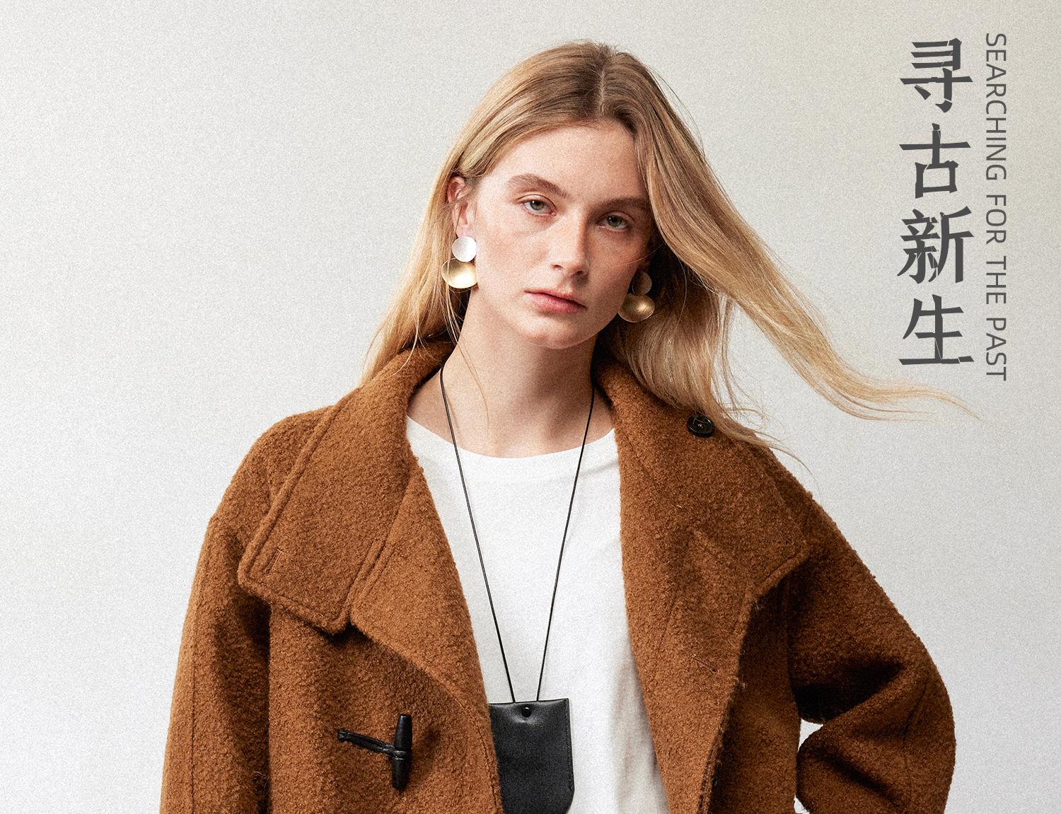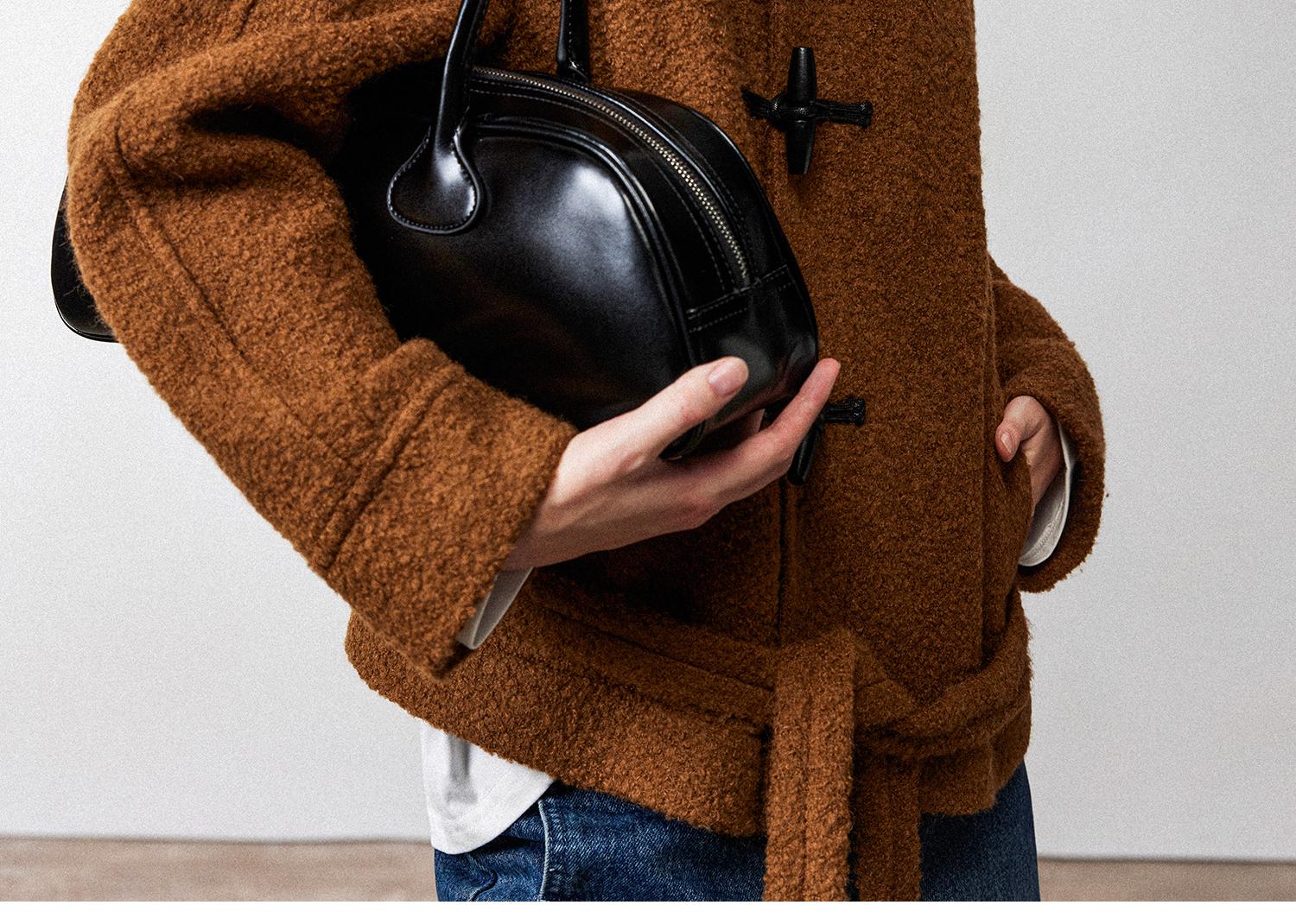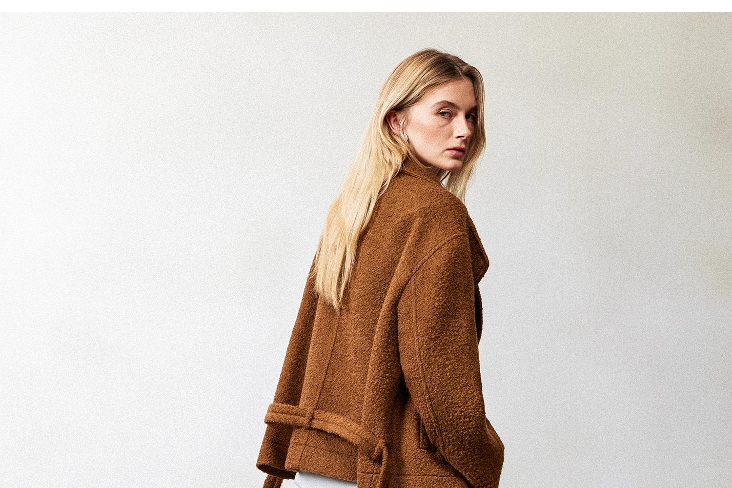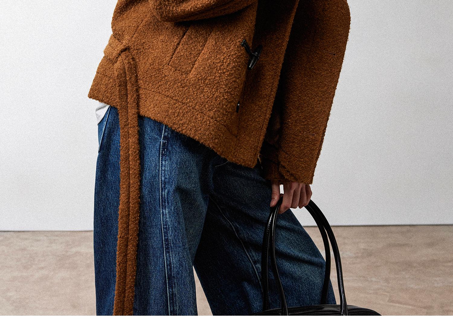 西嘉慵懒松弛感JI简圈圈马海毛混纺立领落肩牛角扣短外套大衣女(货号:DY2404005)