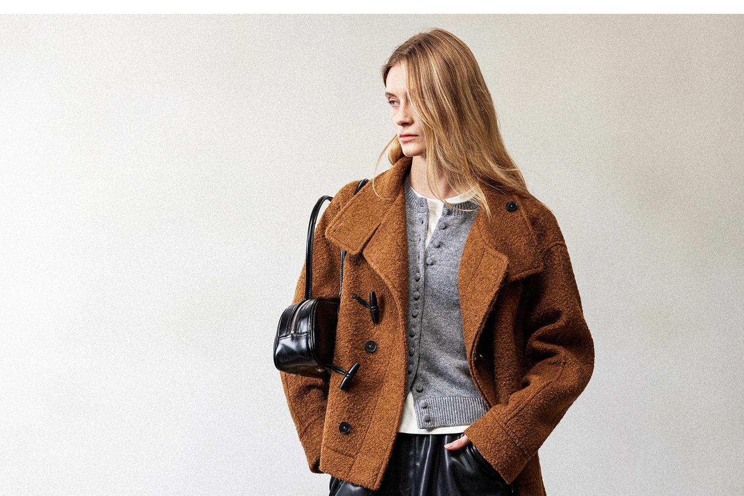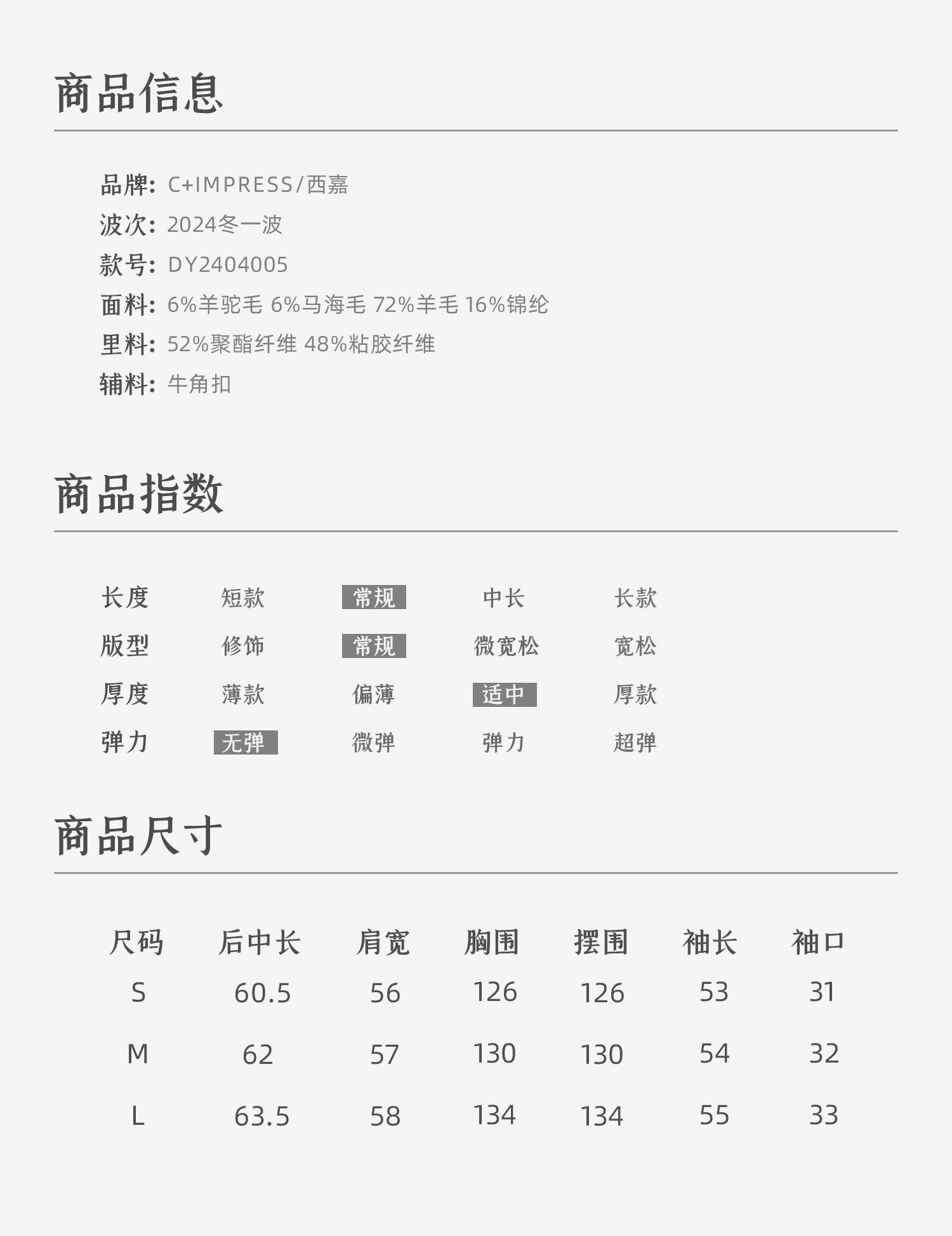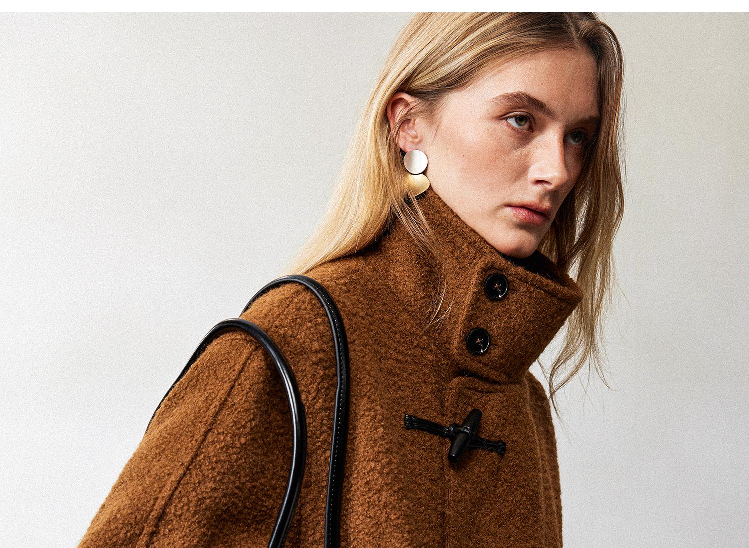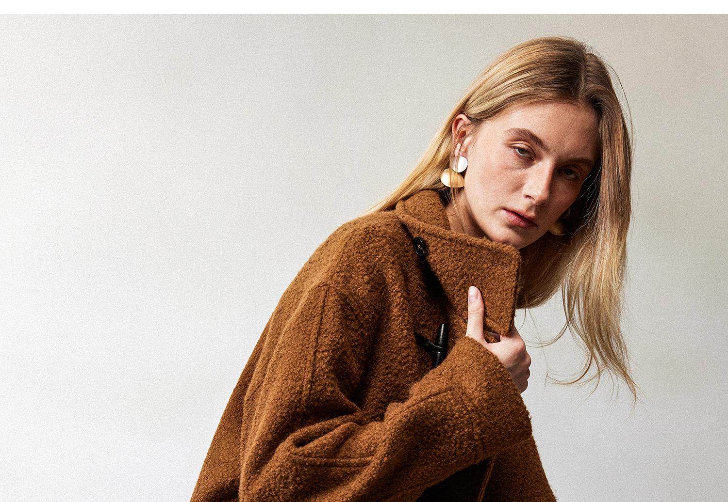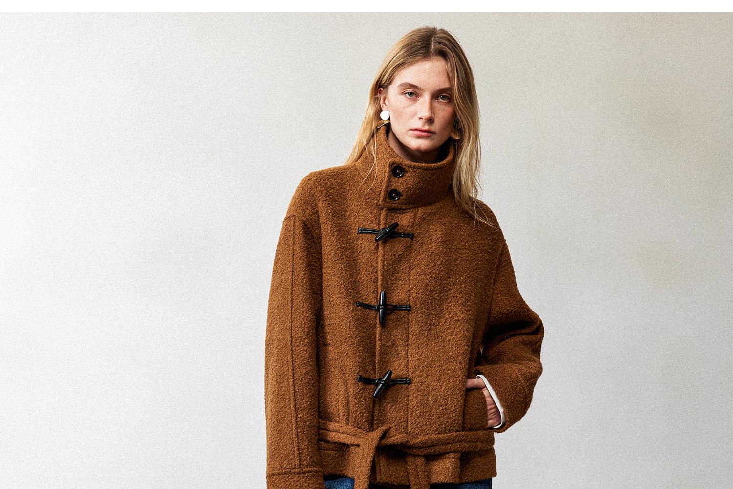 西嘉慵懒松弛感JI简圈圈马海毛混纺立领落肩牛角扣短外套大衣女(货号:DY2404005)