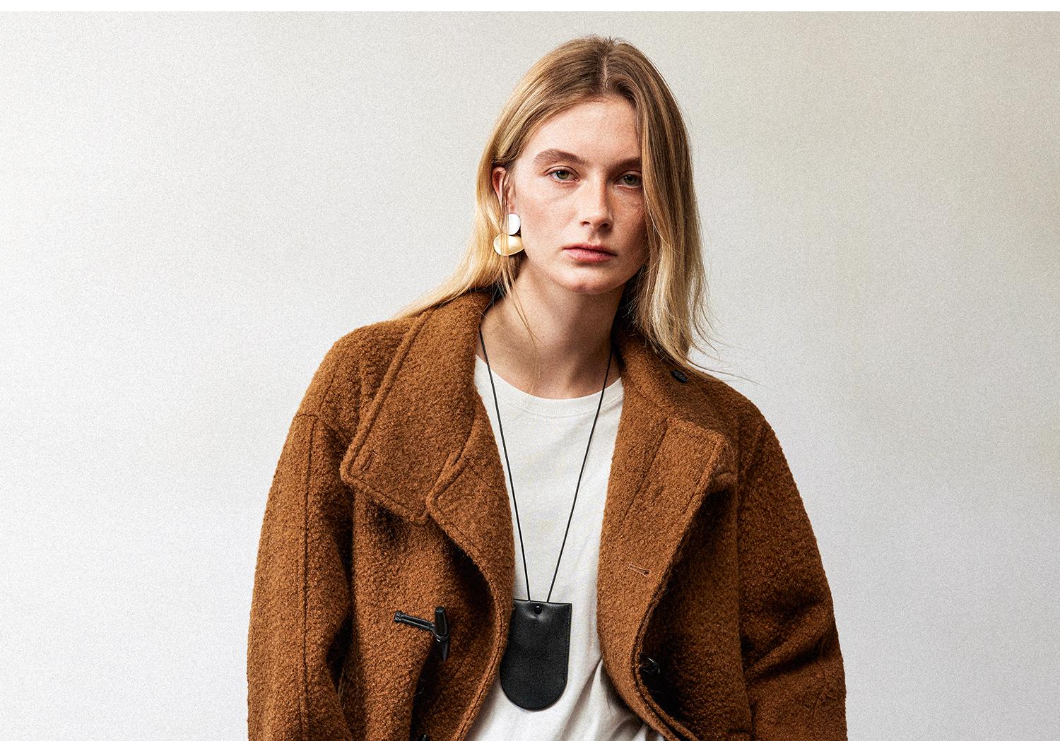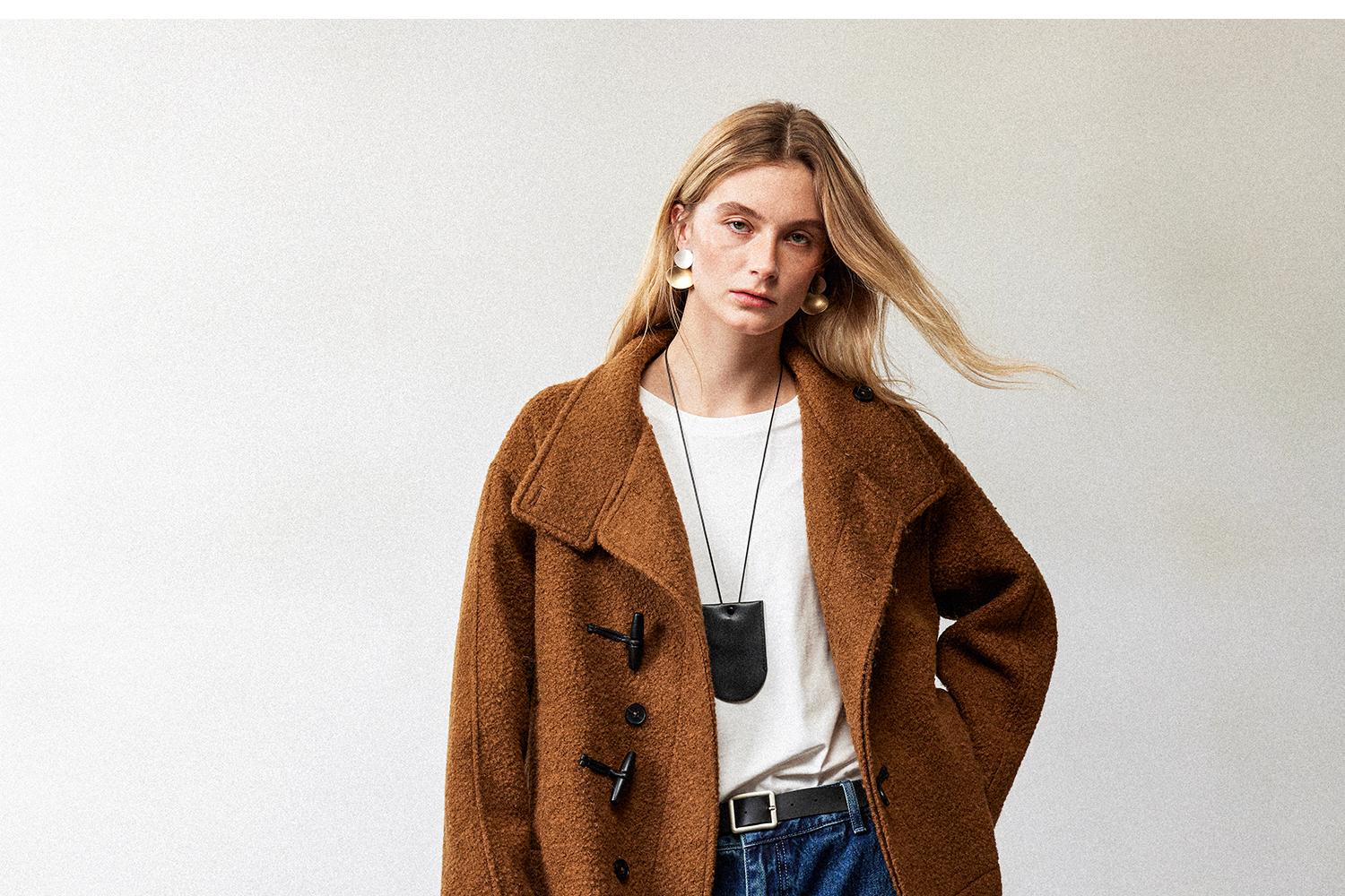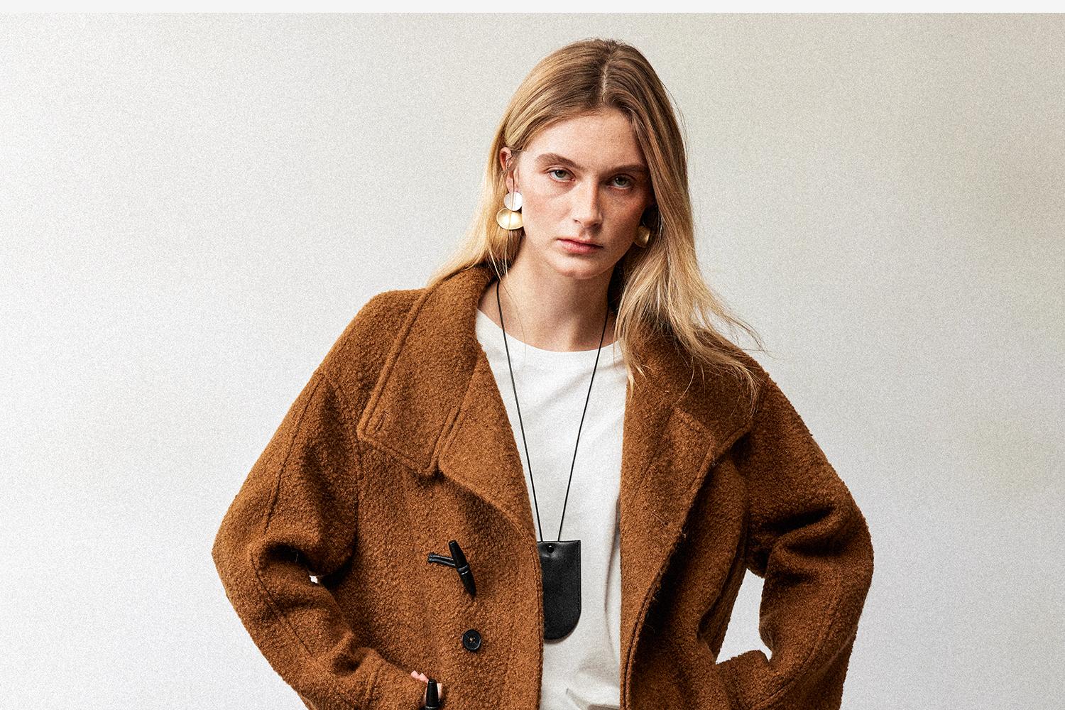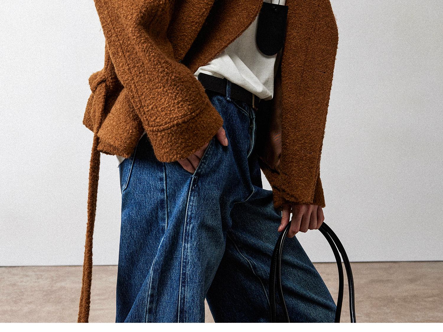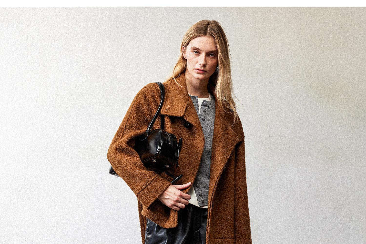 西嘉慵懒松弛感JI简圈圈马海毛混纺立领落肩牛角扣短外套大衣女(货号:DY2404005)