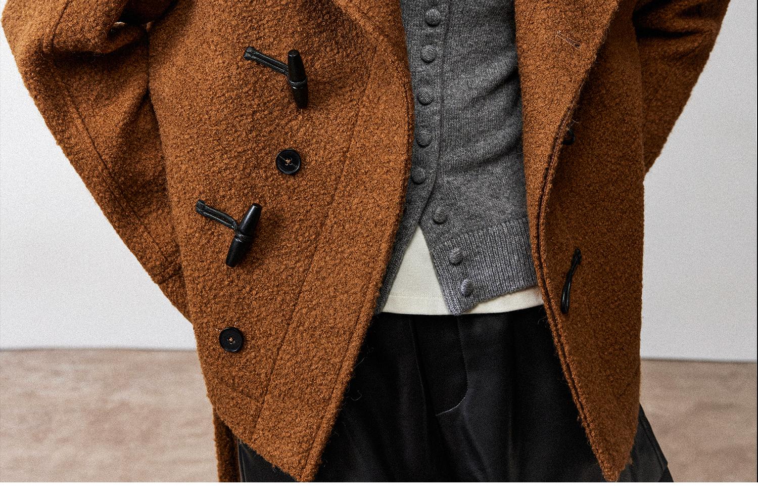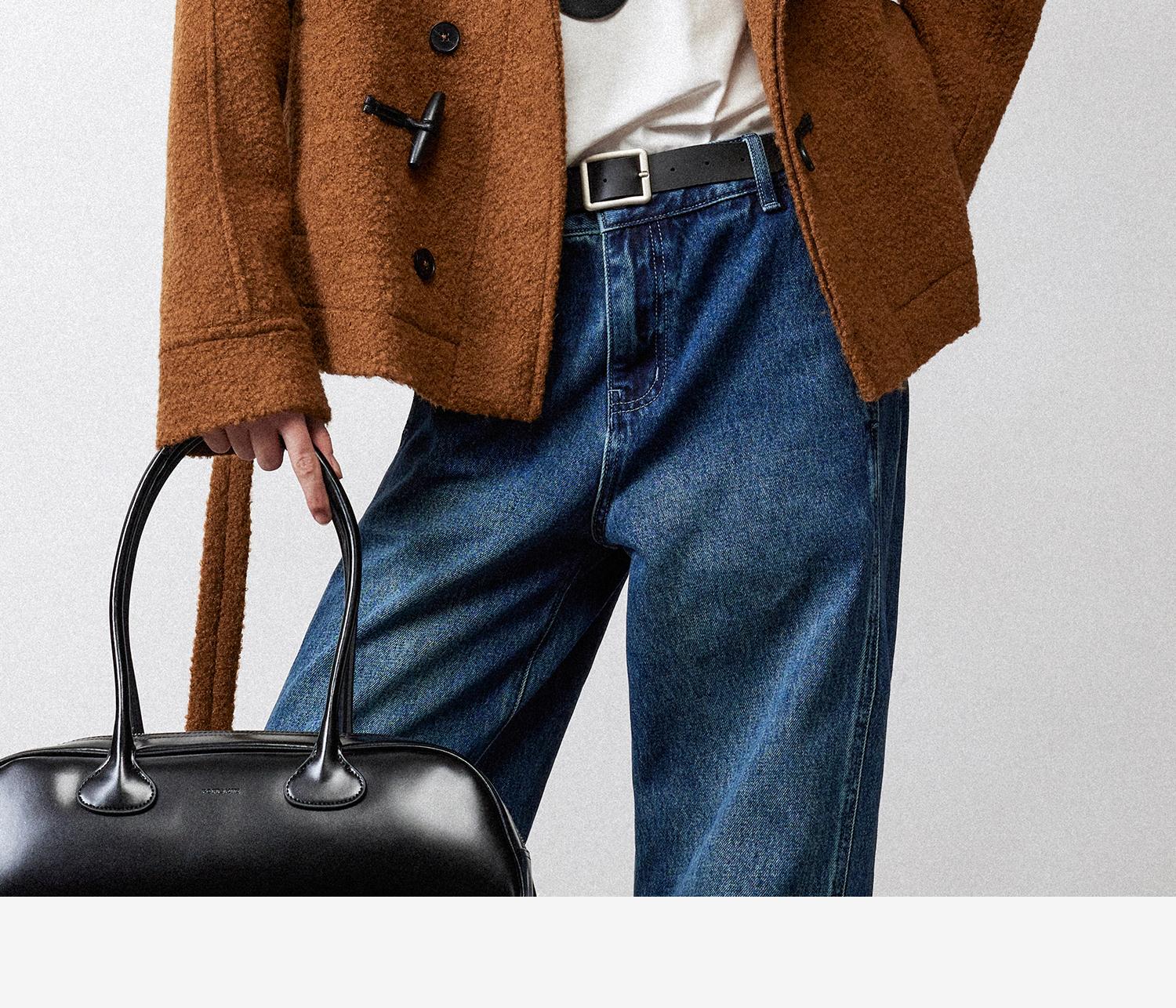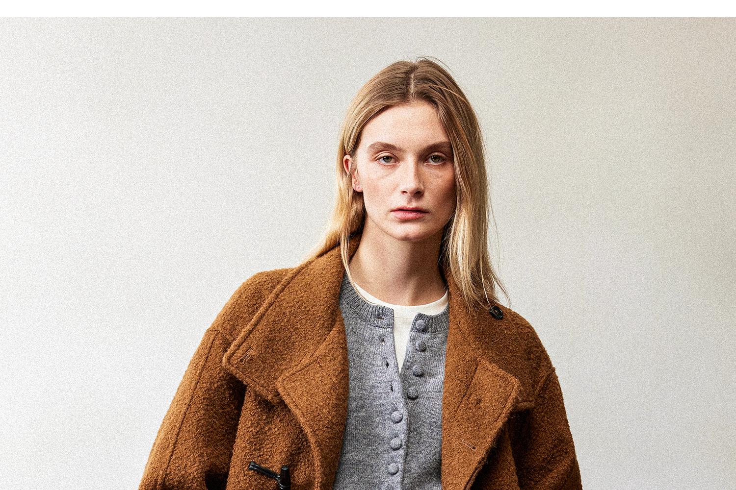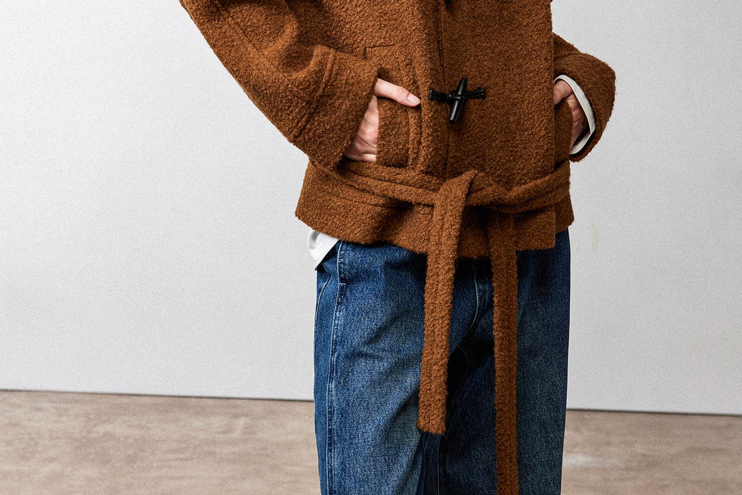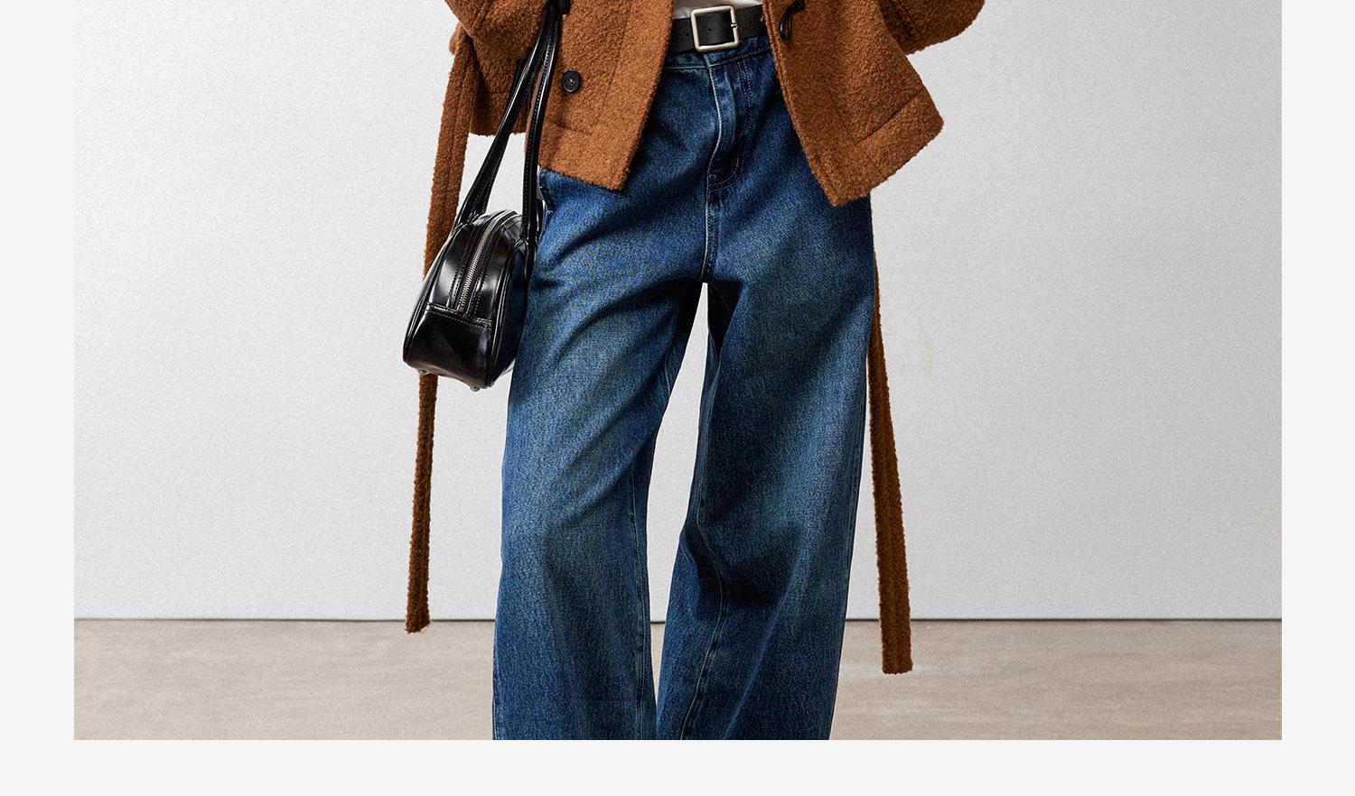 西嘉慵懒松弛感JI简圈圈马海毛混纺立领落肩牛角扣短外套大衣女(货号:DY2404005)