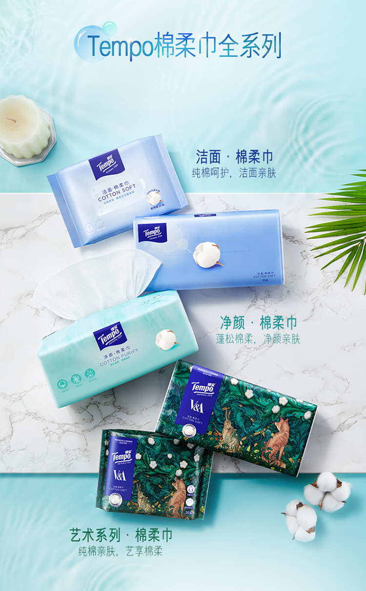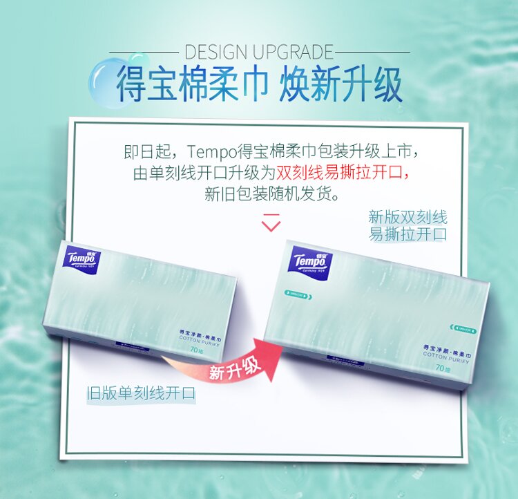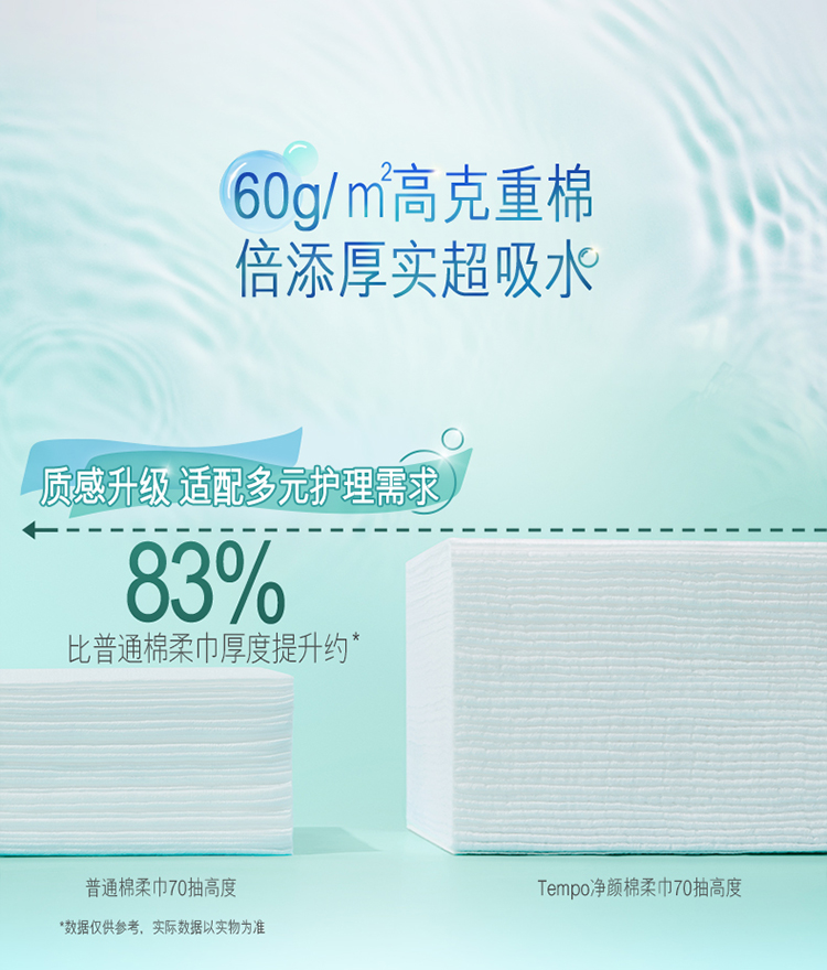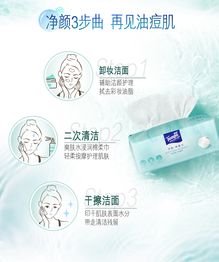 【品牌直发】得宝(Tempo) 净颜棉柔巾70片/包x3包 厚实亲肤不掉屑(新旧款随机发)