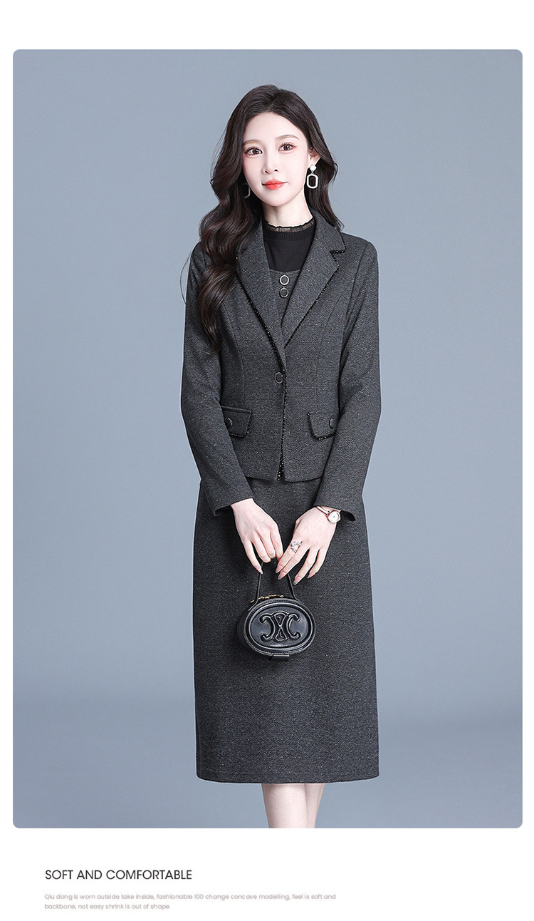 QYM 725002-Y时髦换新两件套连衣裙+西装外套装裙 商品图3