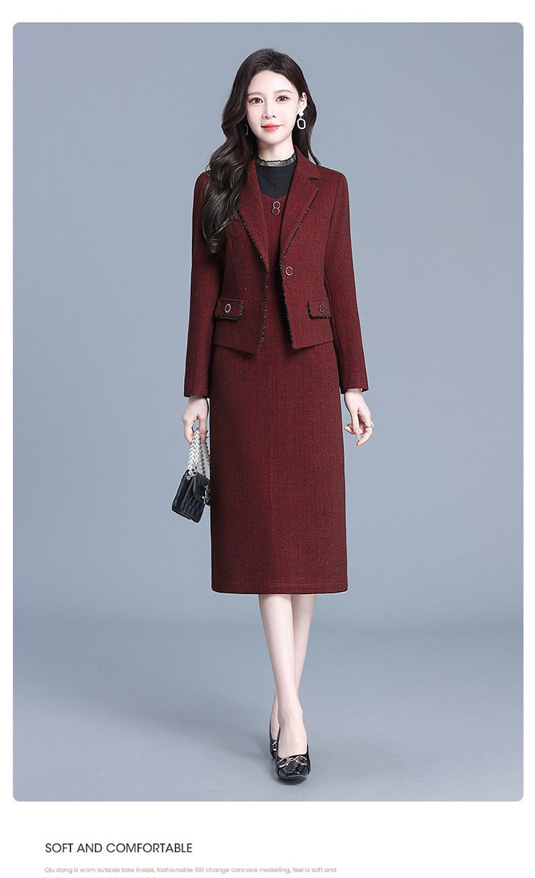 QYM 725002-Y时髦换新两件套连衣裙+西装外套装裙 商品图1