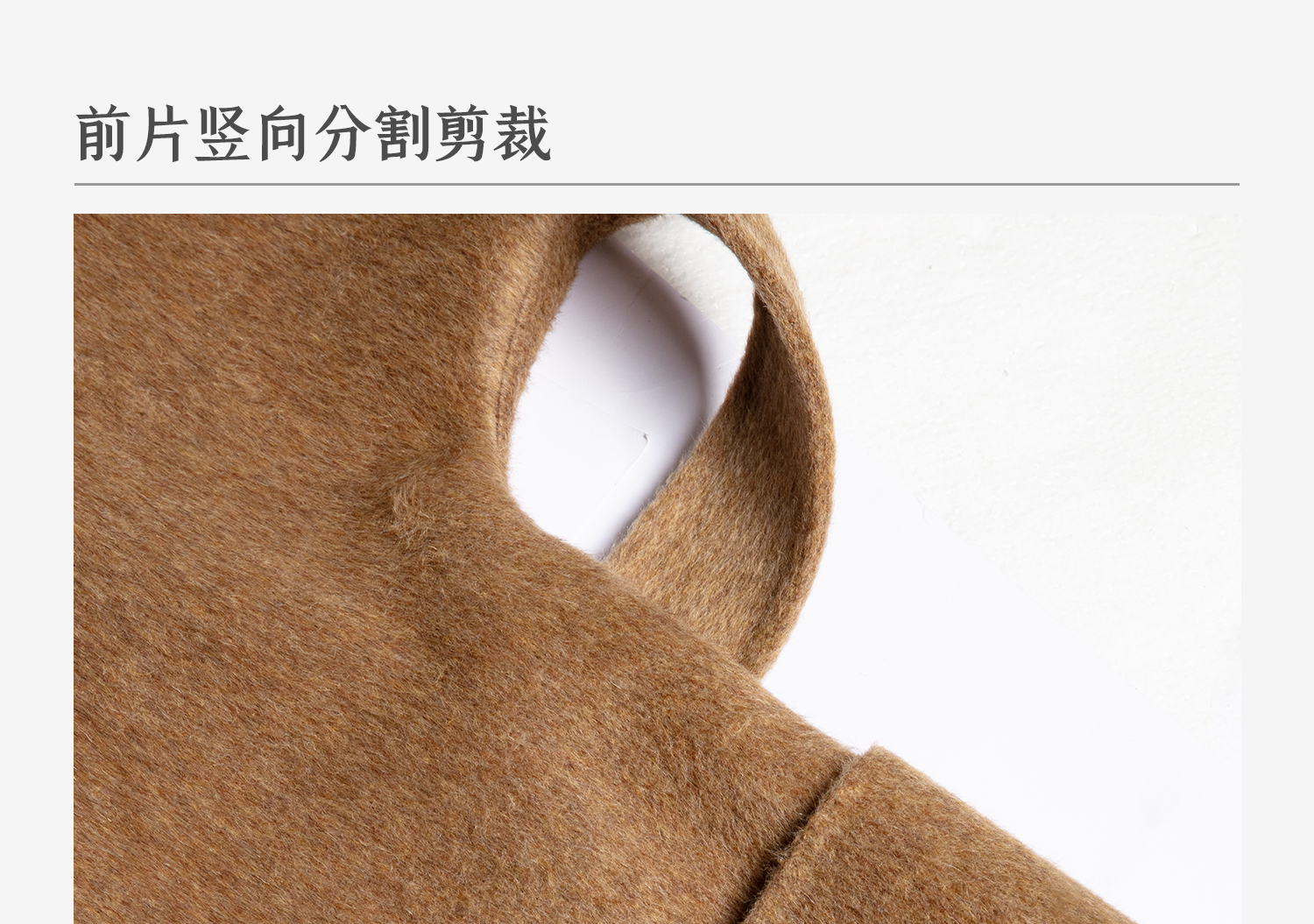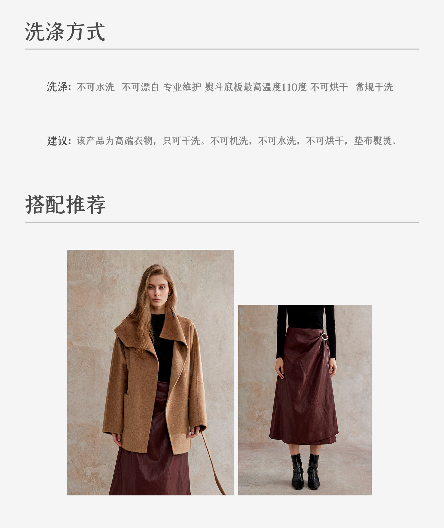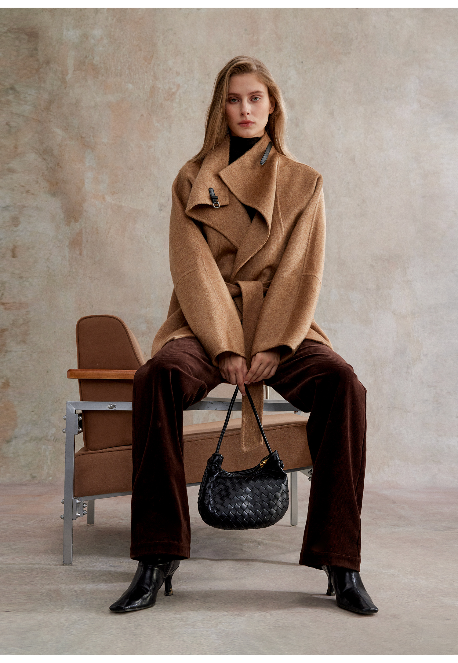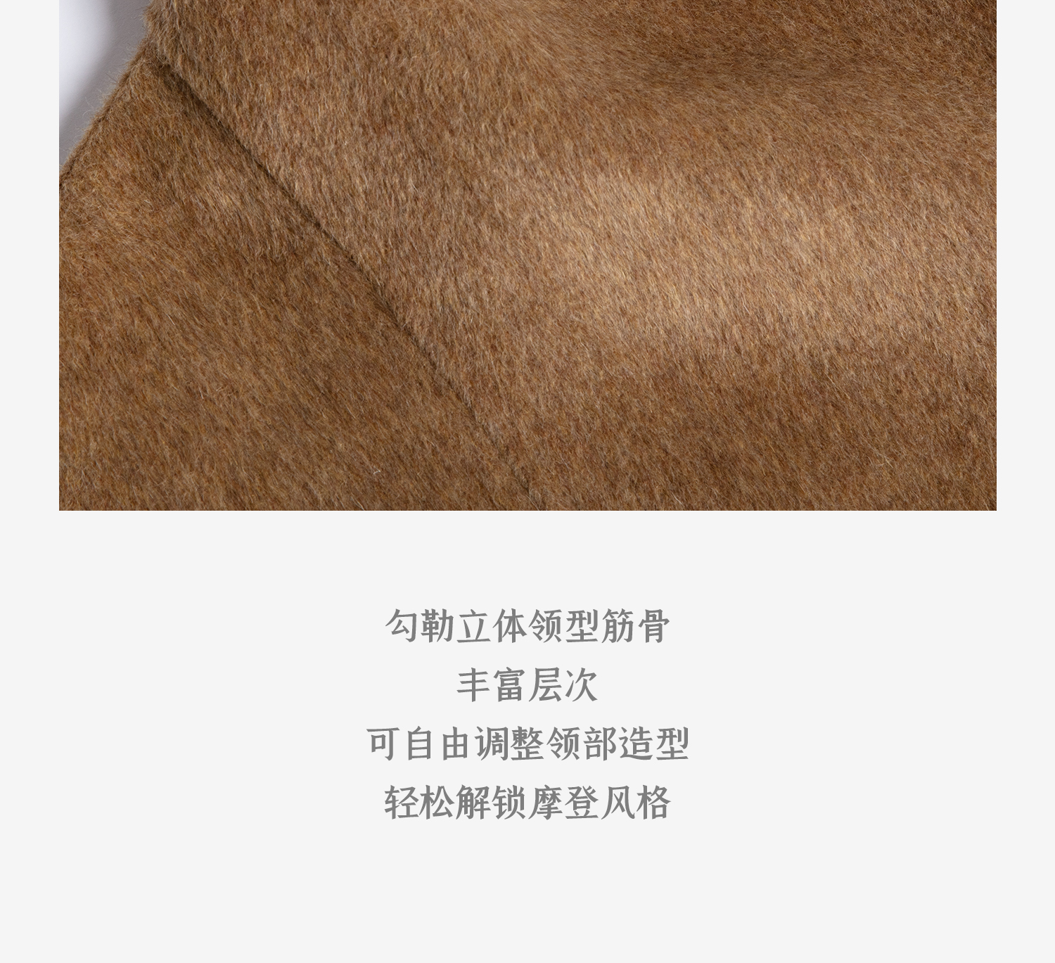 骆驼绒羊毛中长翻领皮袢系带收腰双面尼大衣DY2504071