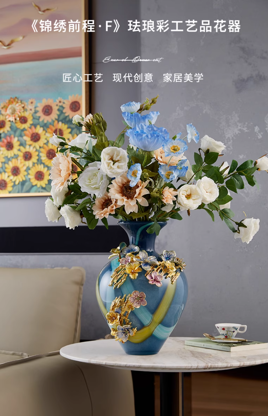 【彼达思】罗比罗丹 锦绣前程花瓶珐琅彩工艺餐桌装饰花瓶家居饰品摆件