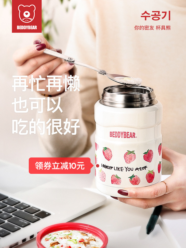 现货 韩国杯具熊焖烧杯闷烧壶超长保温不锈钢饭盒焖粥神器保温桶粥桶罐