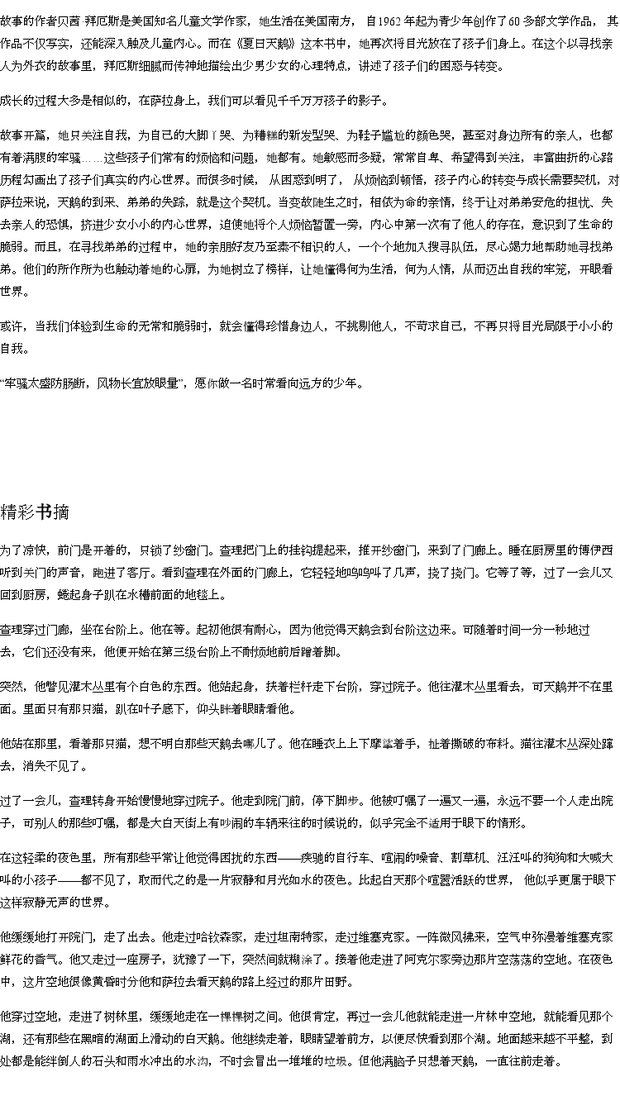 夏日天鹅 4年级正版现货速发|名师推荐|小学生课外阅读四年级