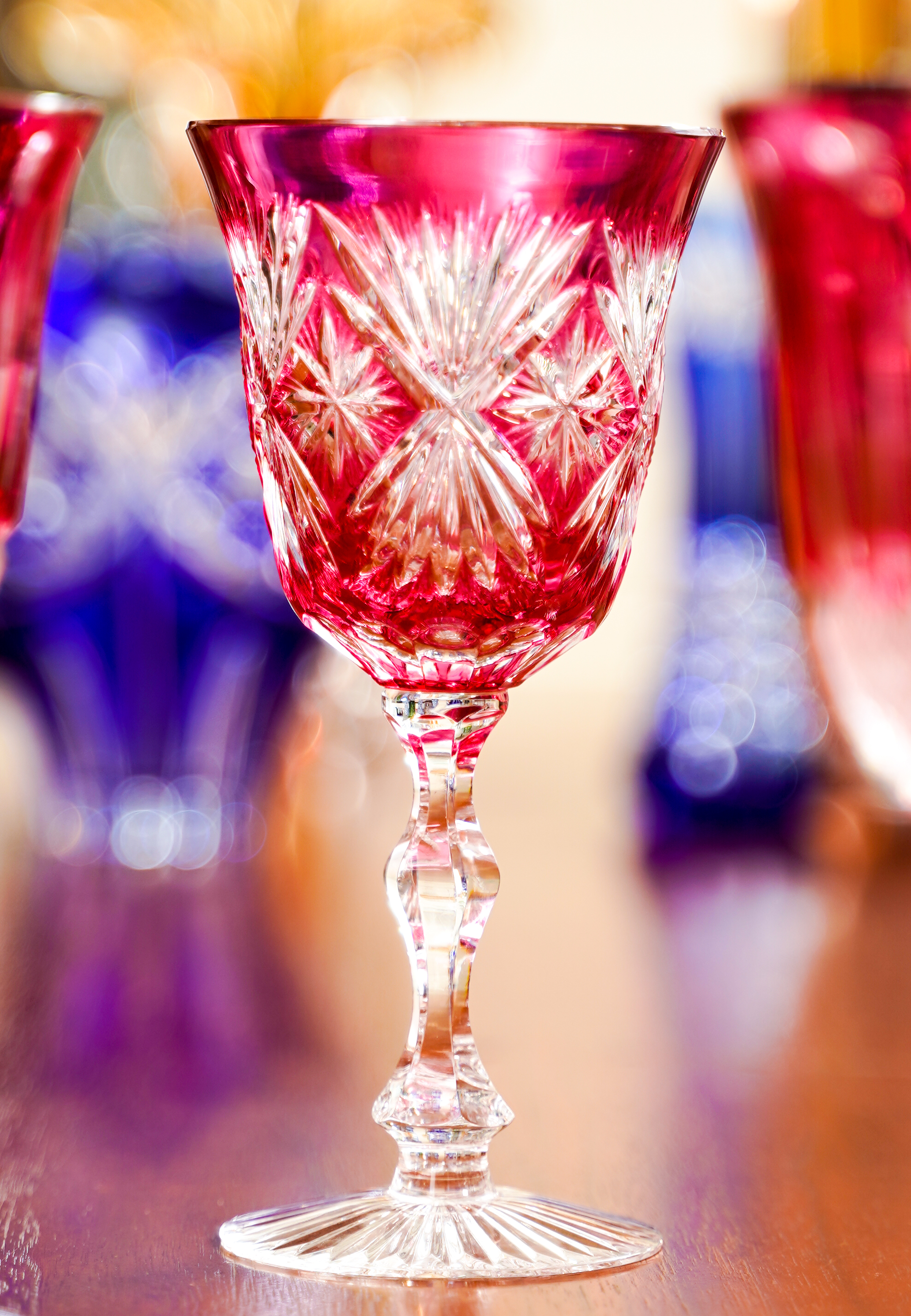 水晶高脚杯绿、金皮红、淡紫3款,货号【C145-185B】规格:87*87*175mm