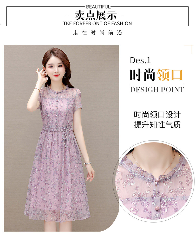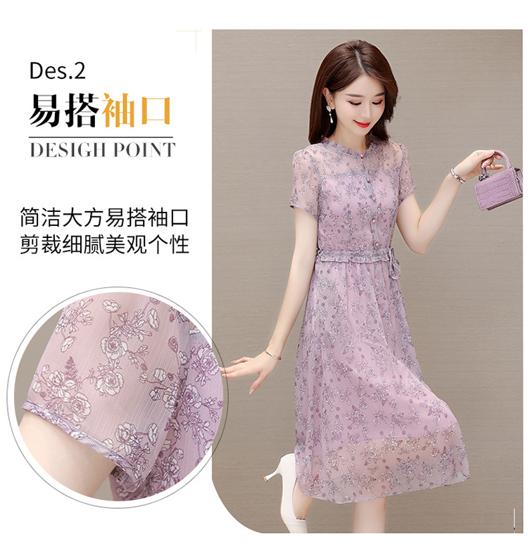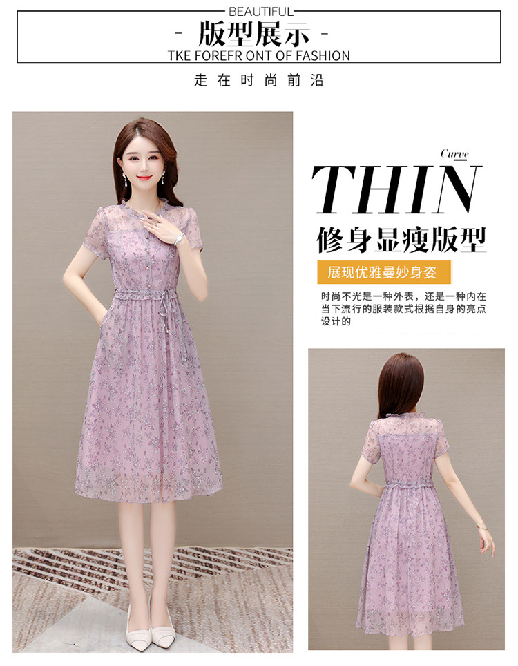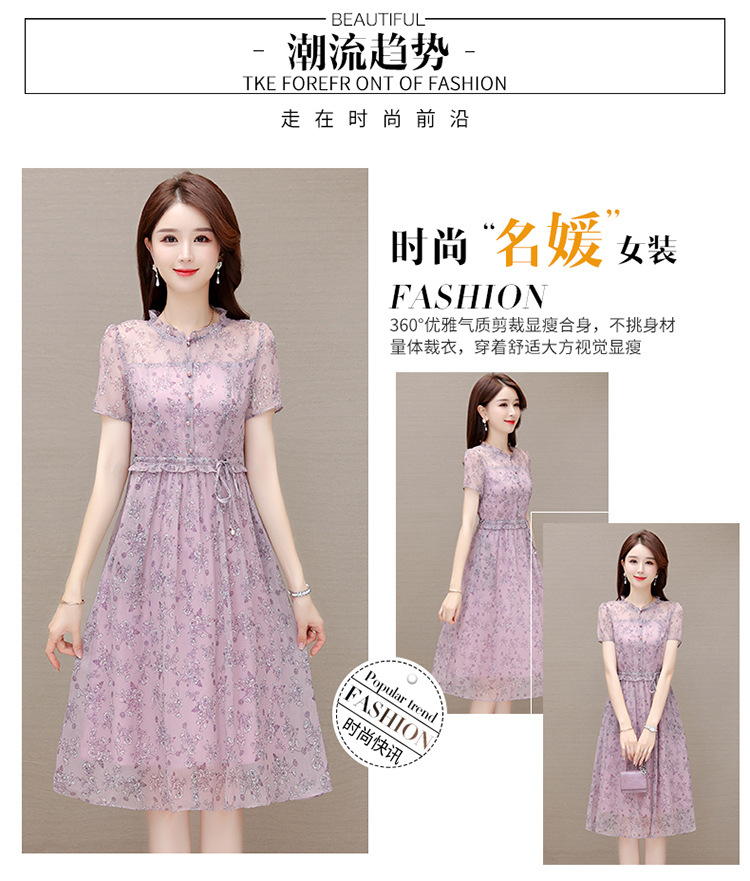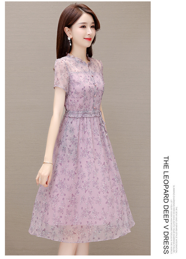 DD-碎花连衣裙女2023年夏季新款洋气中长裙短袖口袋打底裙A字裙